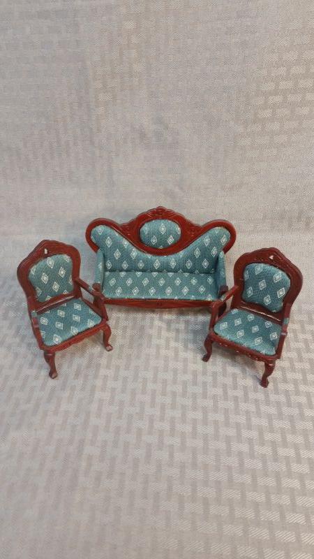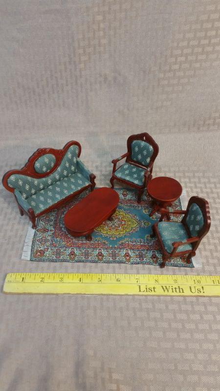 Lot of 6 Miniature Living Room Sofa, Chairs, Rug, Side & Coffee Table