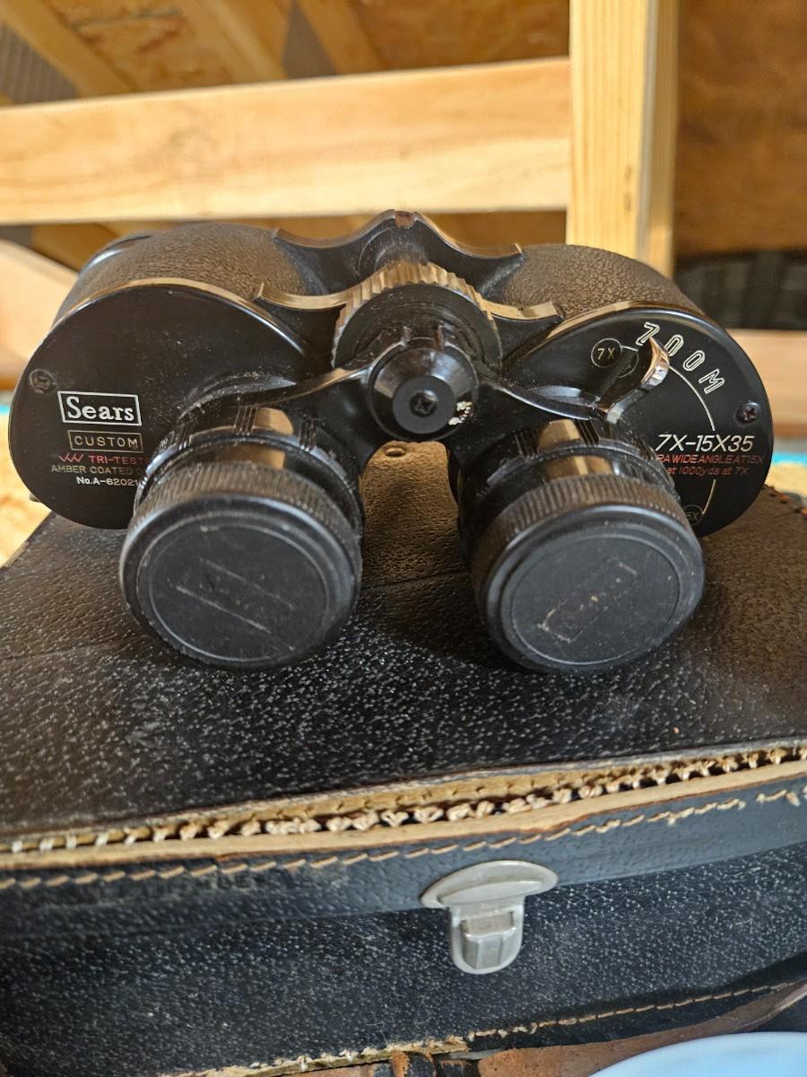 Sears Custom Binoculars Including Original Case, Coke Bottle Opener and Early 1900's Mini Wooden Clogs
