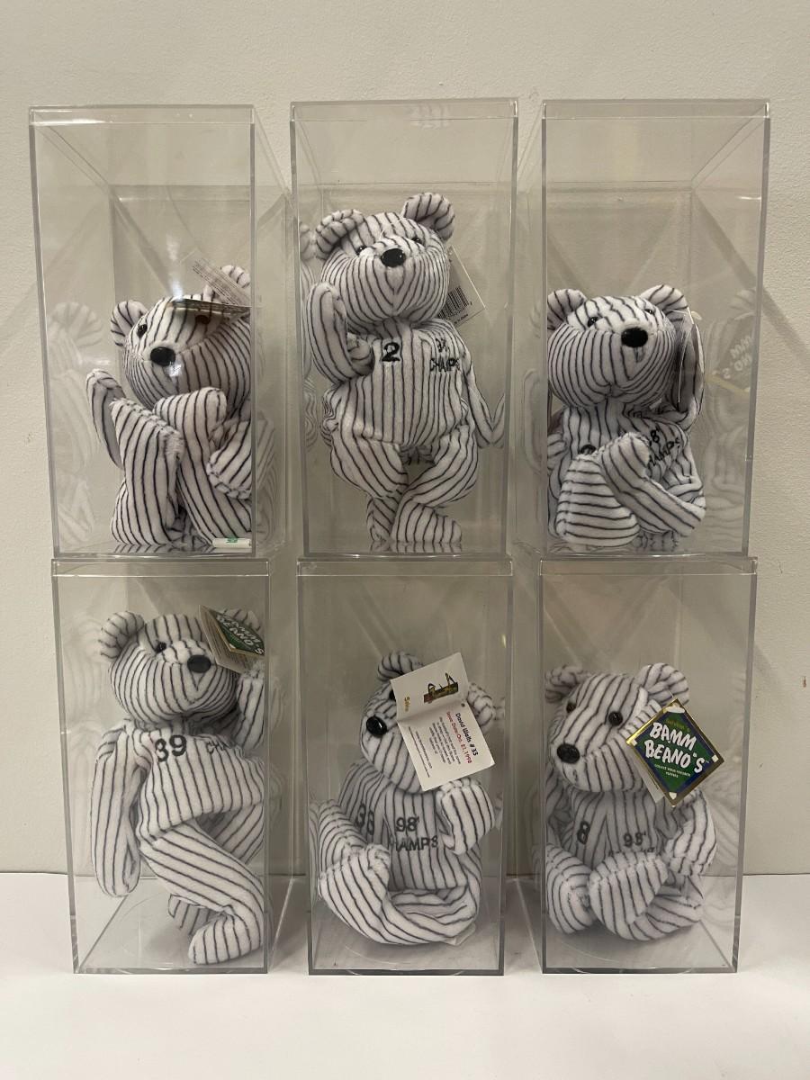 Lot of 6 Salvino's Bamm Beano's Bean Bag Bears, Yankees 1998 Champs (24, 2, 26, 39, 33, 18)