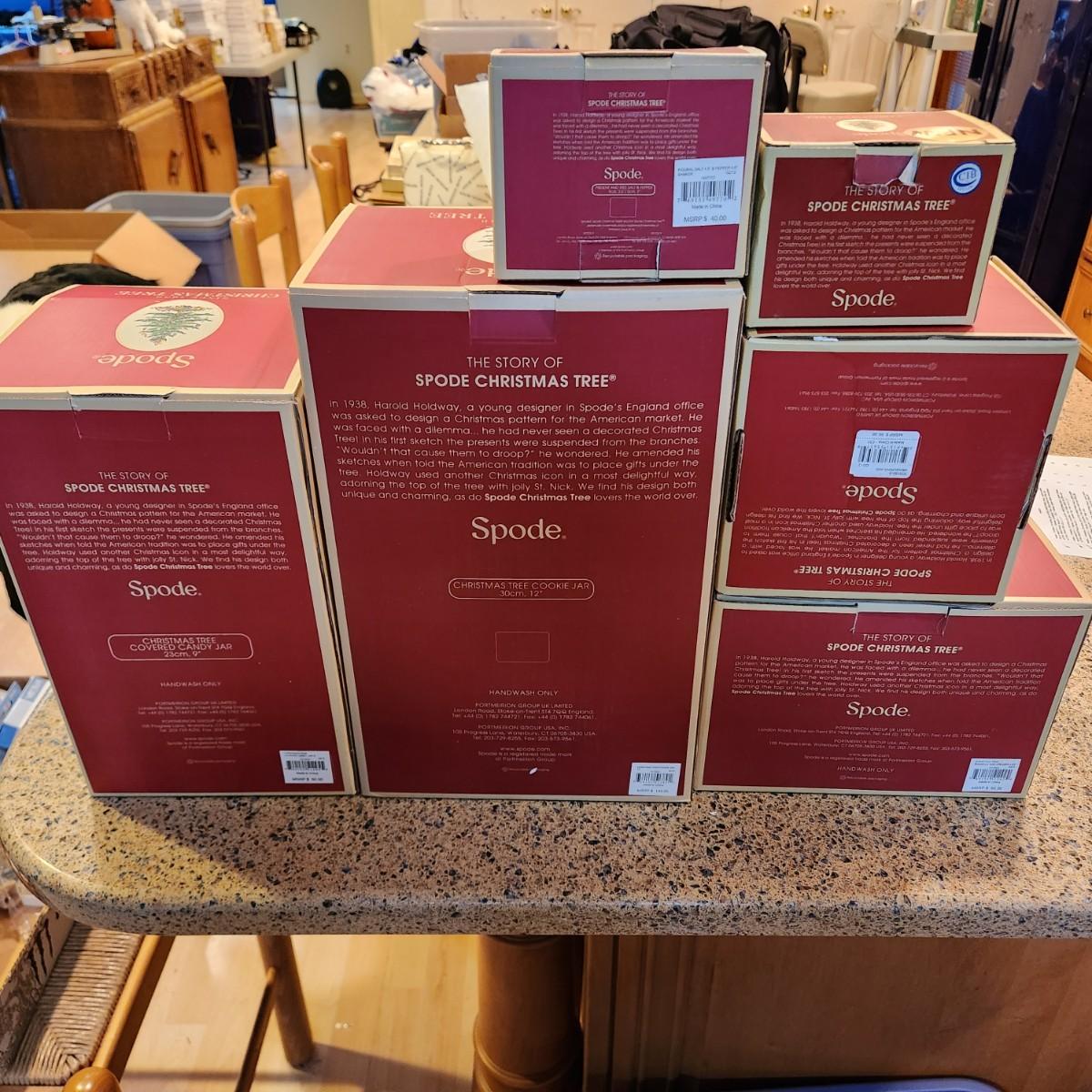 Lot of 6 Spode Christmas Cookie Jar, Sugar & Creamer, Measuring Jug