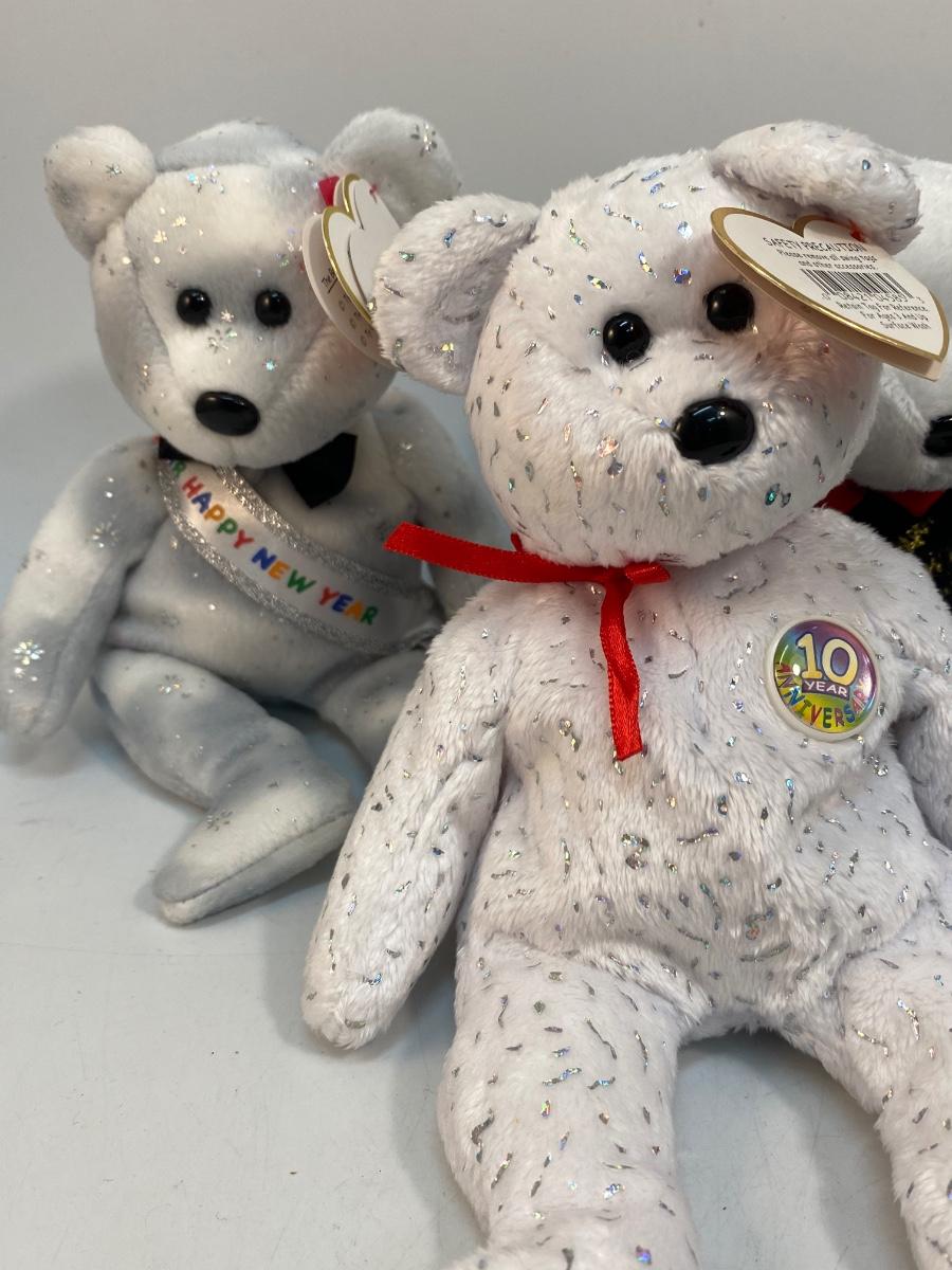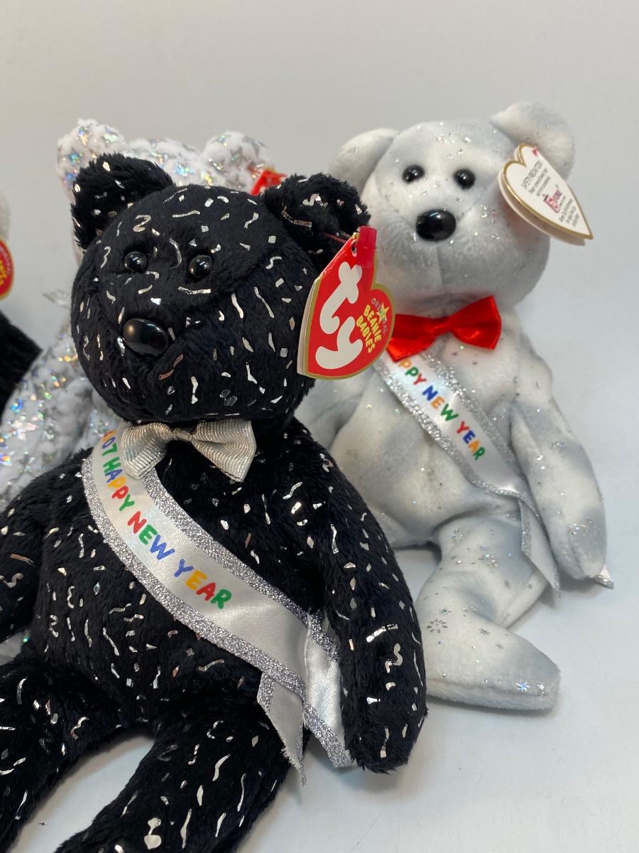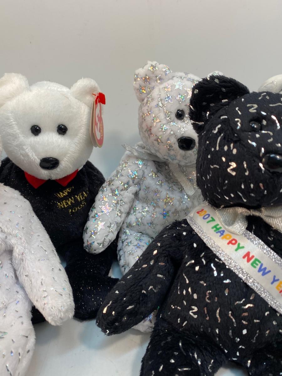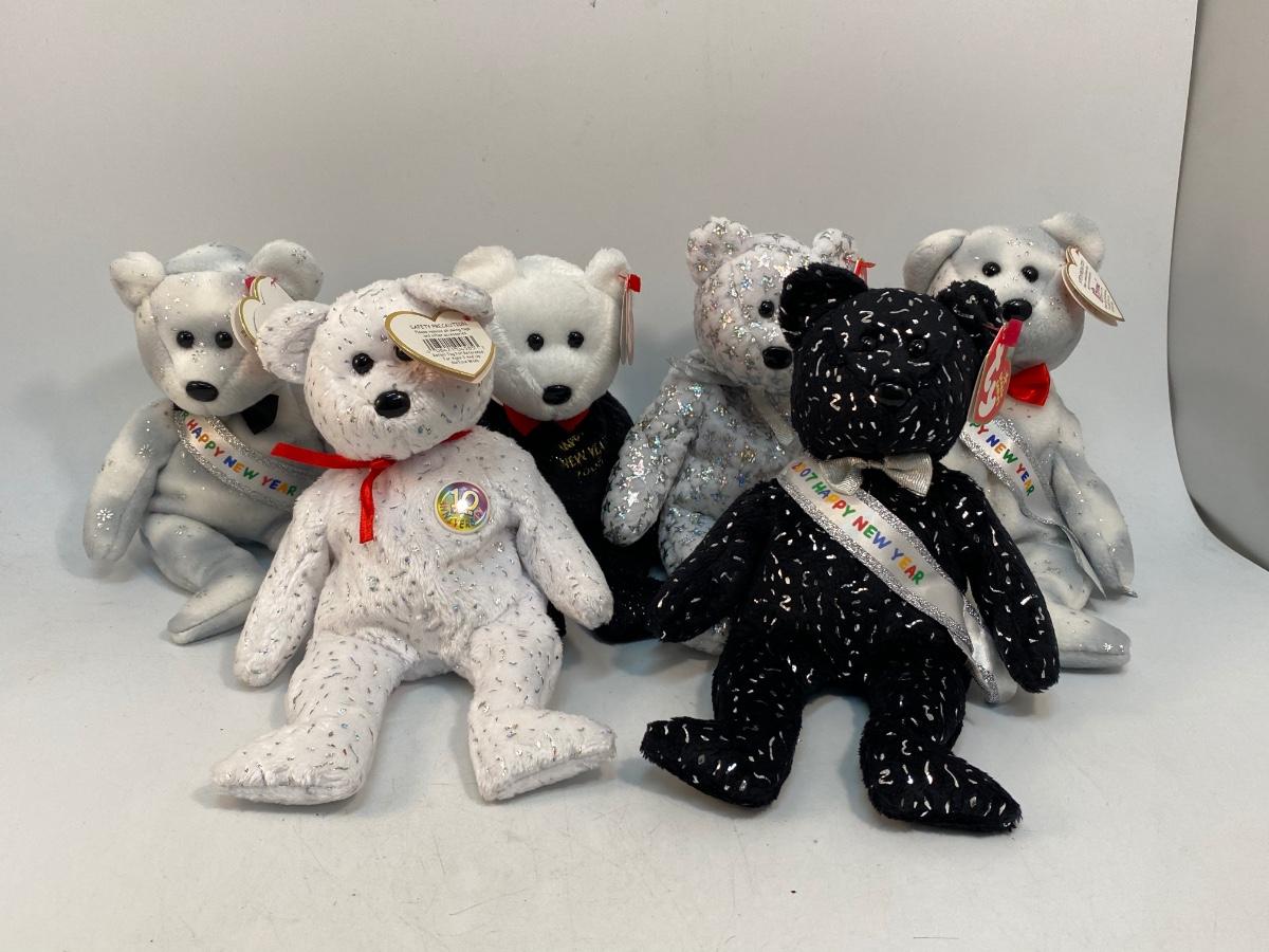 Lot of 6 TY Beanie Babies Celebration New Years Teddy Bear Plush Stuffed Animals. All have hang tags. Two are identical. Good condition.