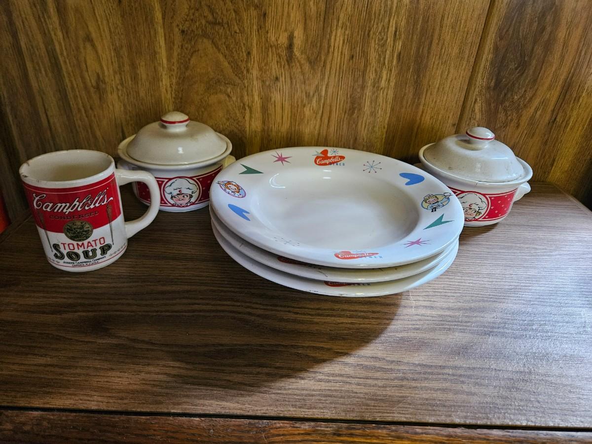 Lot of 6 Vintage Campbells Soup Dishware, Mugs, Etc.