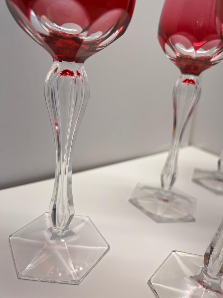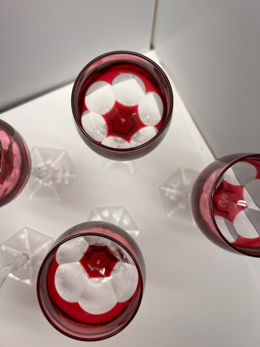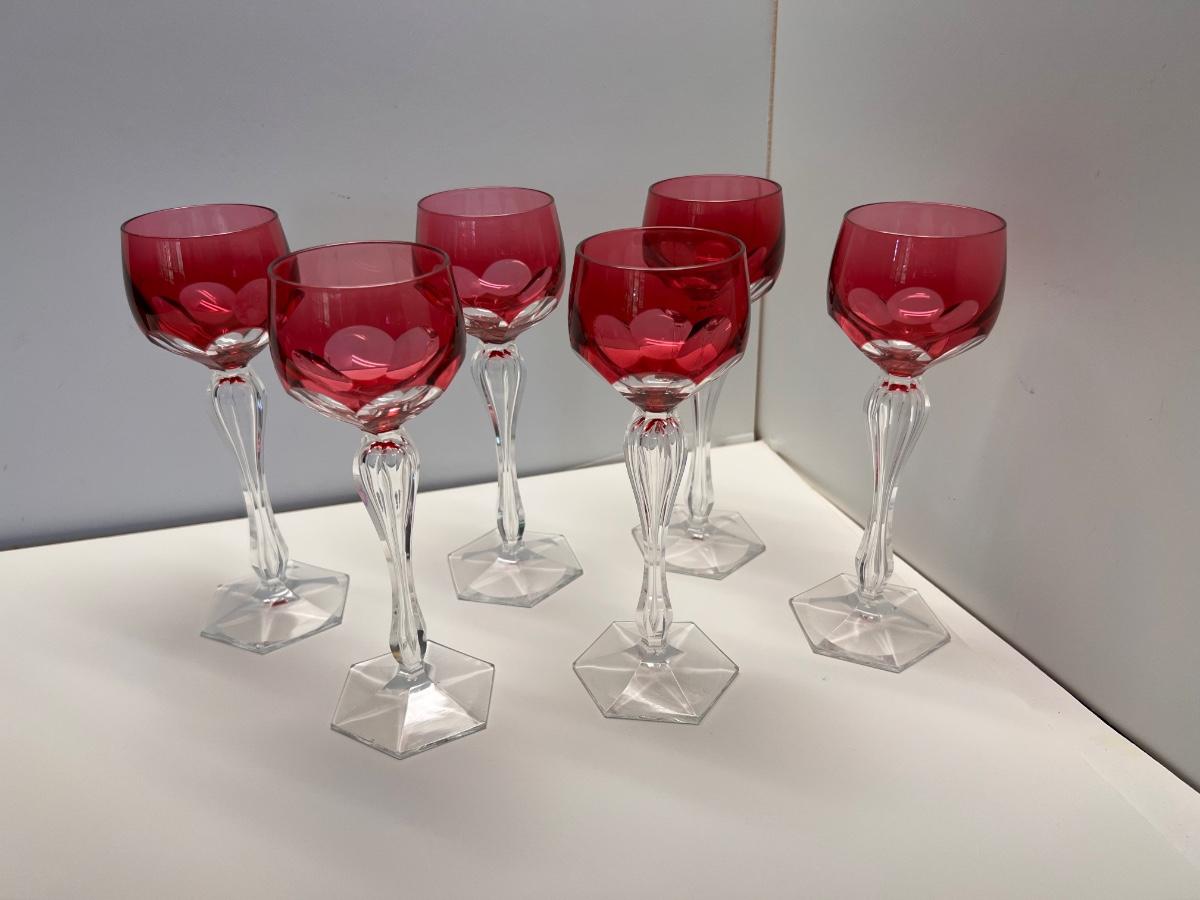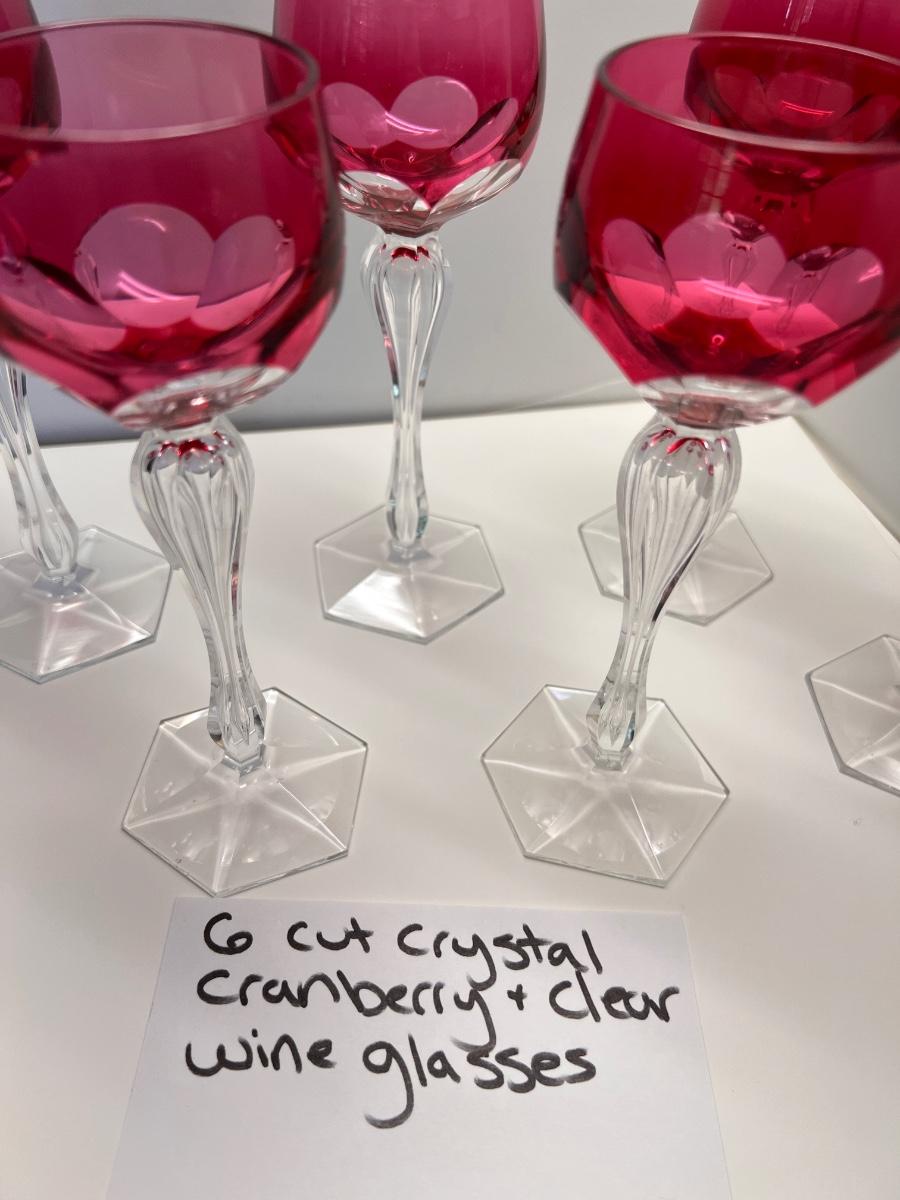 Lot of 6 Vintage Cut Crystal Cranberry and Clear Wine Glassses