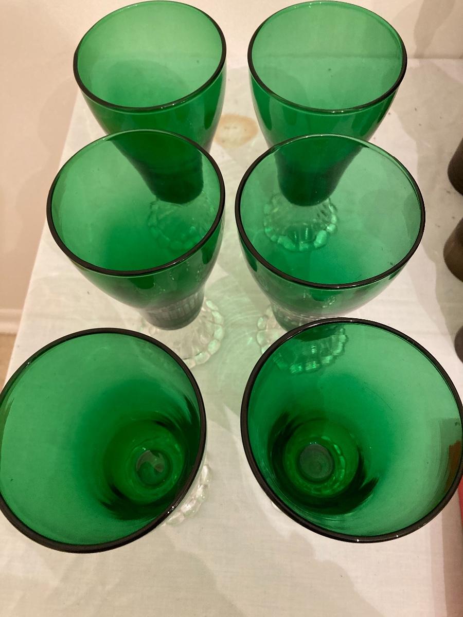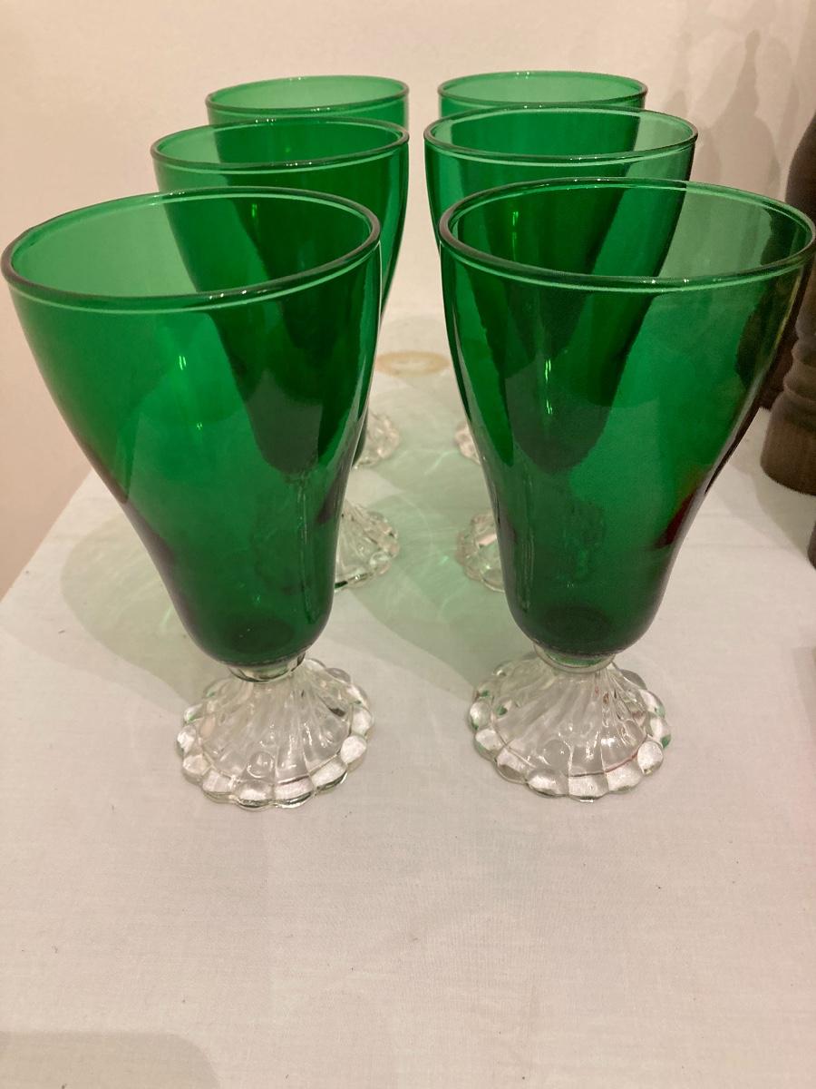 Lot of 6 Vintage Green Glass Goblets. 12 oz.