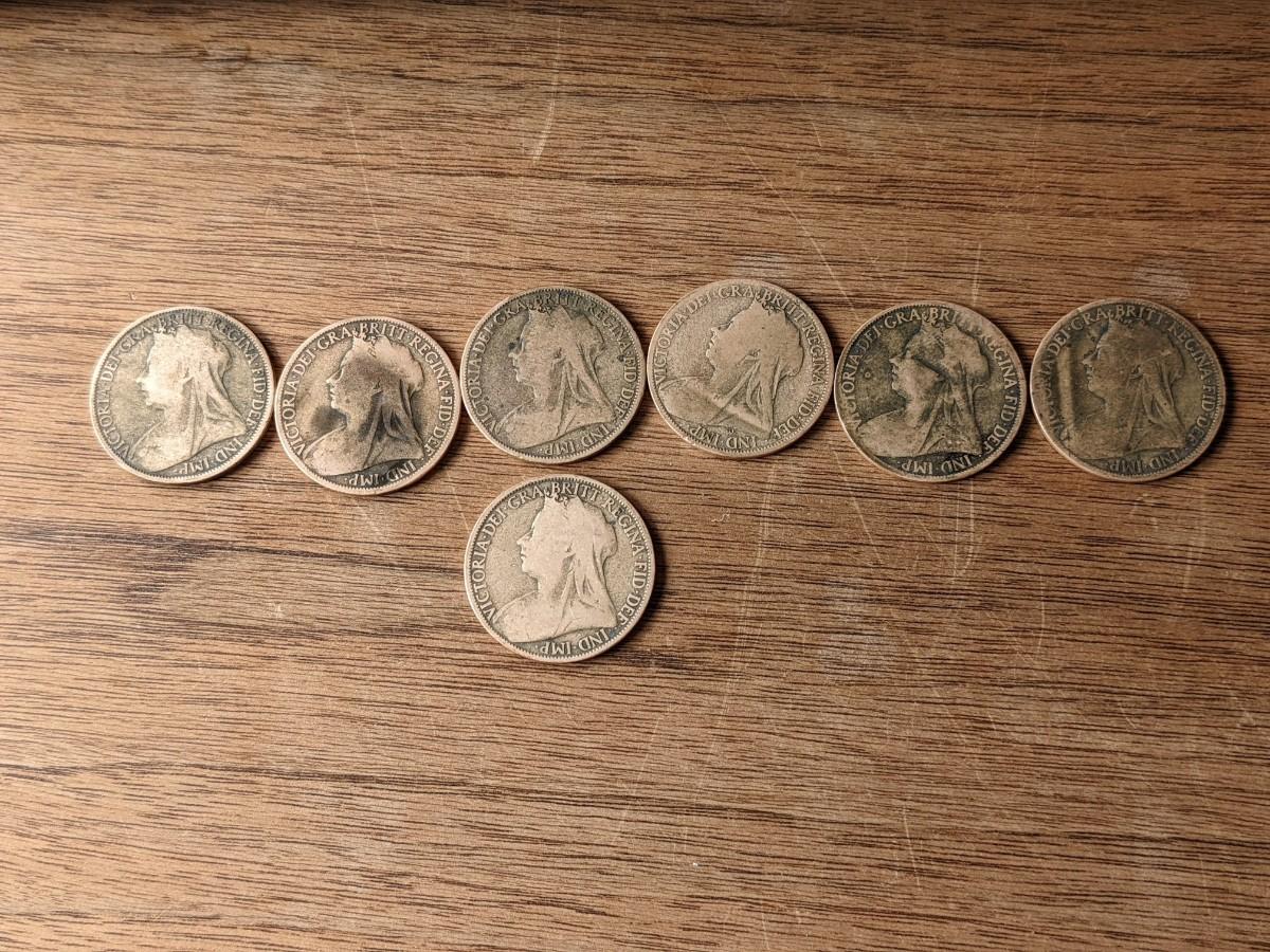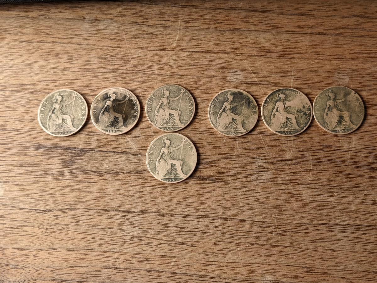 Lot of 7, 1895-1898 Bronze British Victorian One Penny's