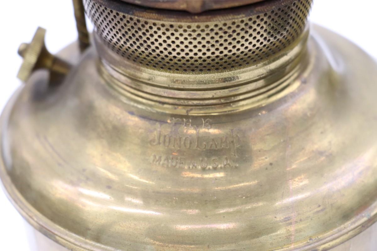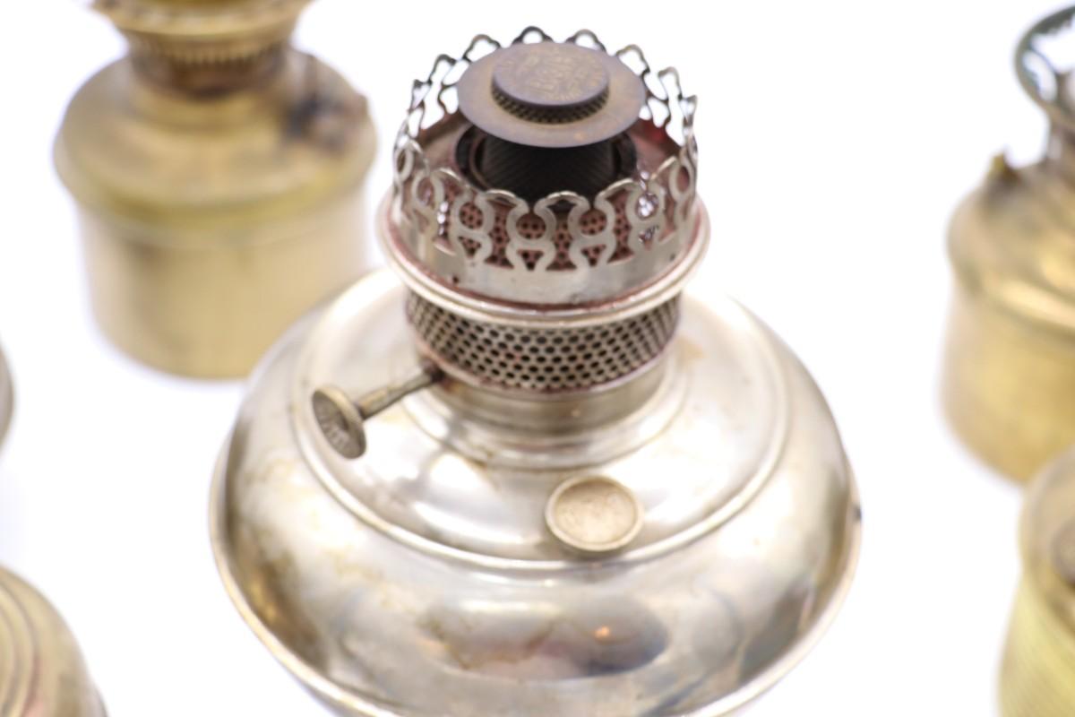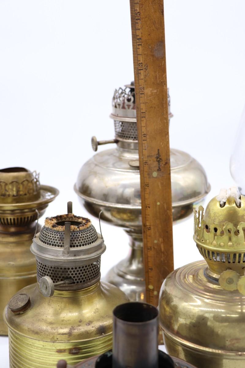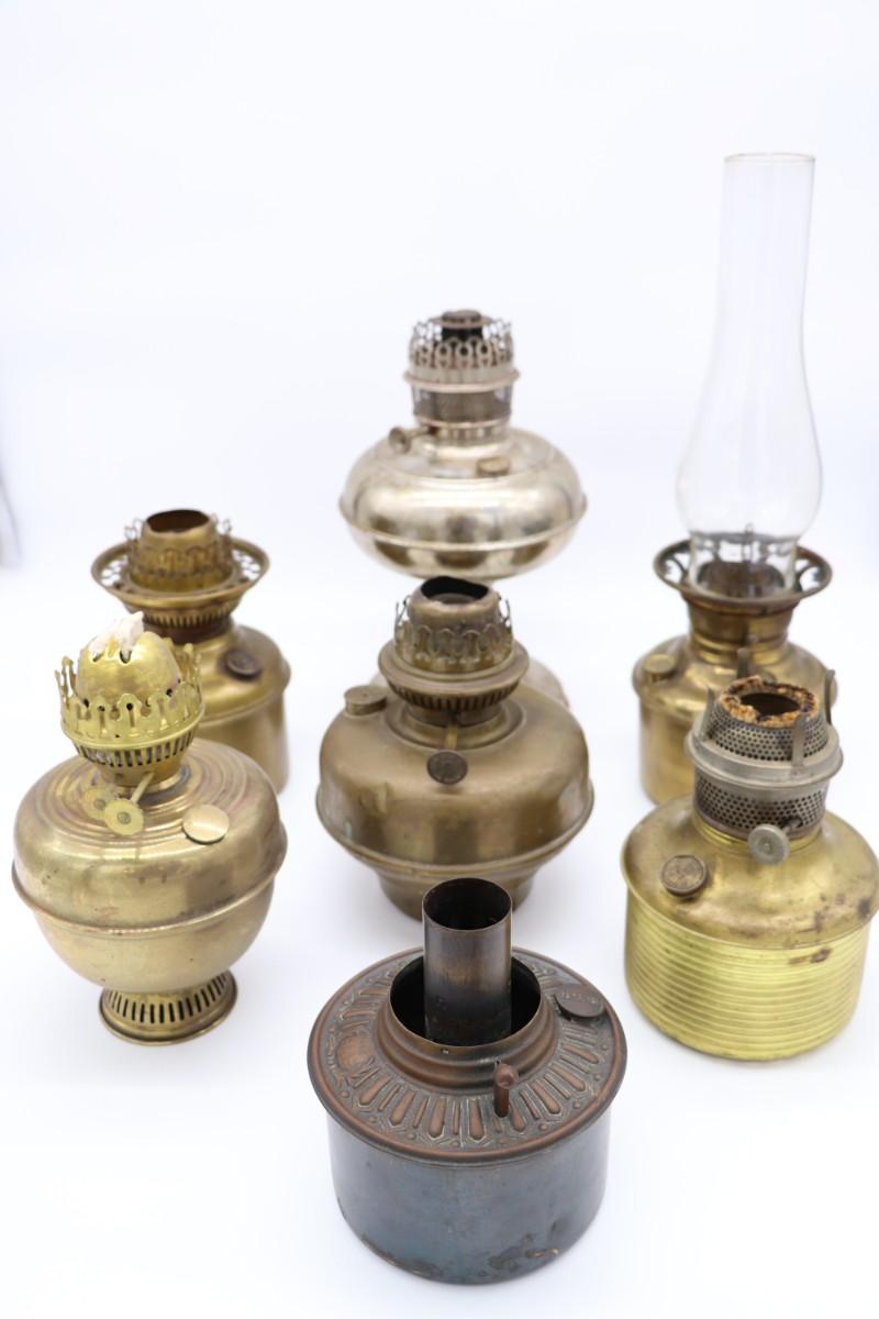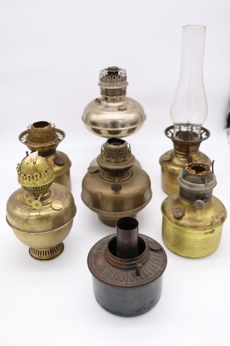 Great lot of 7 antique kerosene lamp burners. Brands include the B&H (Bradley and Hubbard), L&B (La Lampe Belge, Lempereur & Bernard Belgium), Miller, and The Juno Lamp. From the estate of an antique store owner and lamp enthusiast. Condition as shown.