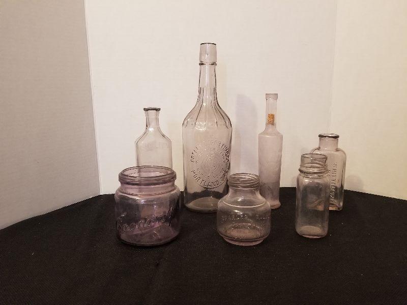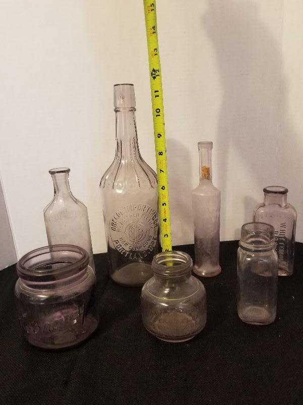 Lot of 7 Antique & Vintage Medicine Type Bottles Purple Tint - #89-A