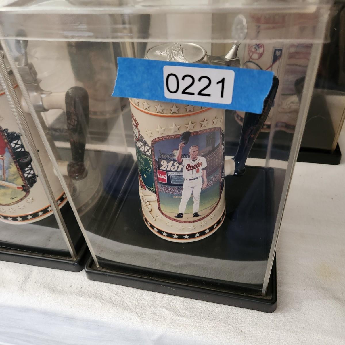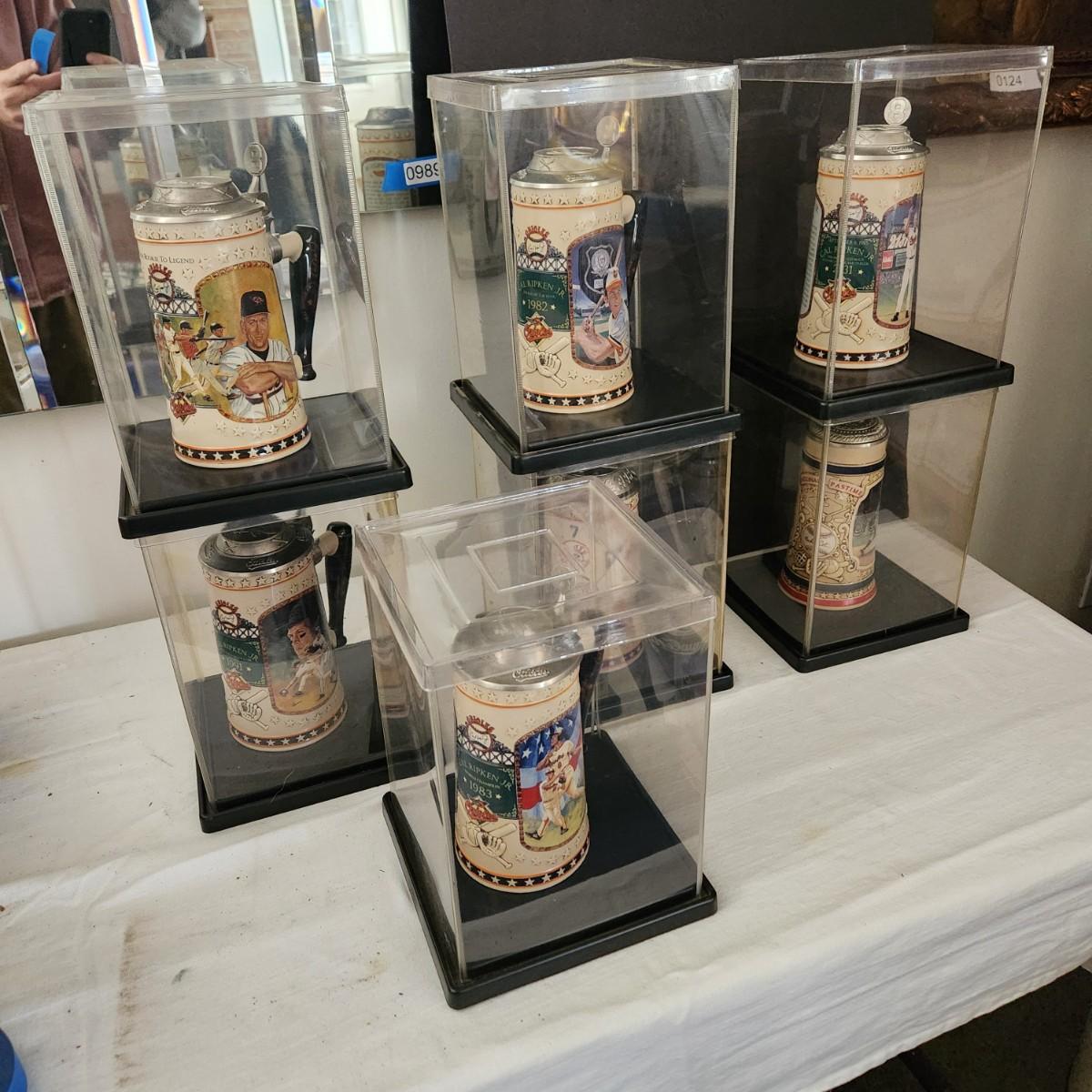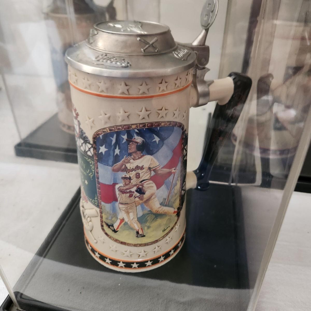 Lot of 7 Beer Steins 5 Cal Ripken 1 Babe Ruth 1 Mickey Mantle