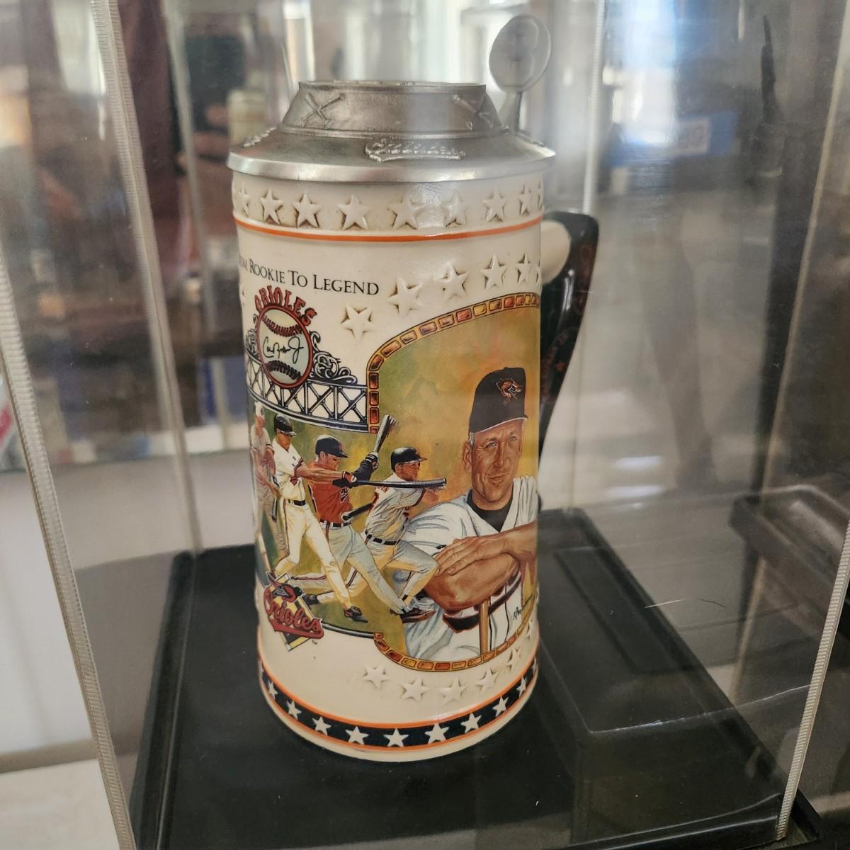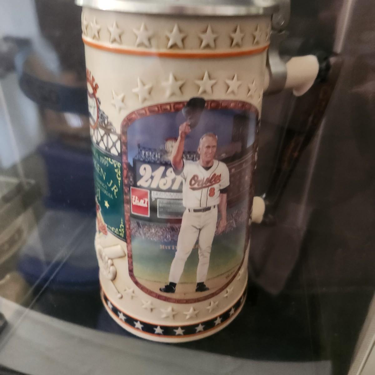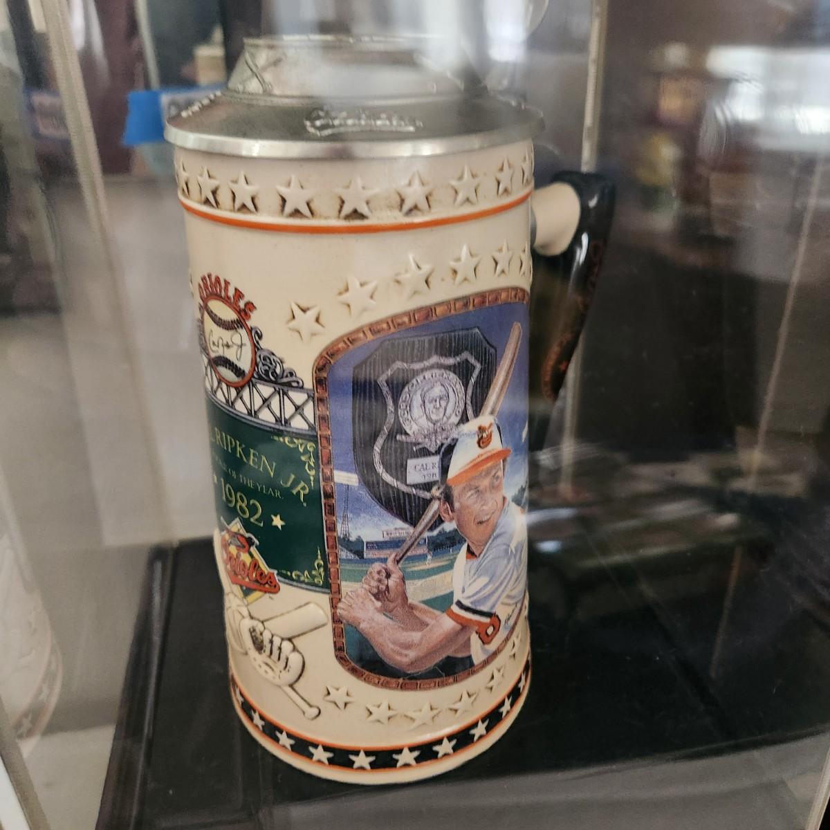 Lot of 7 Beer Steins 5 Cal Ripken 1 Babe Ruth 1 Mickey Mantle