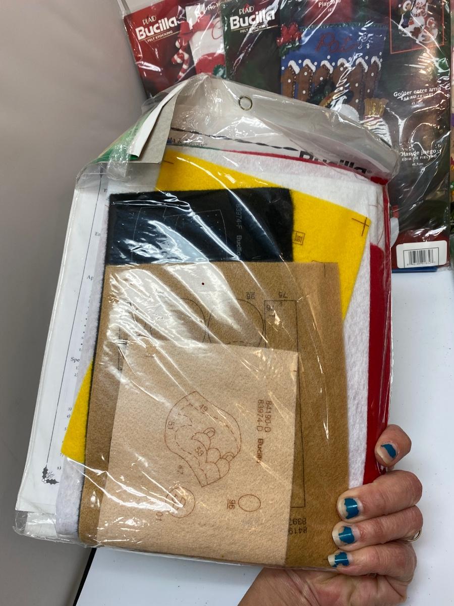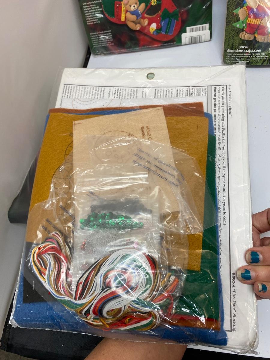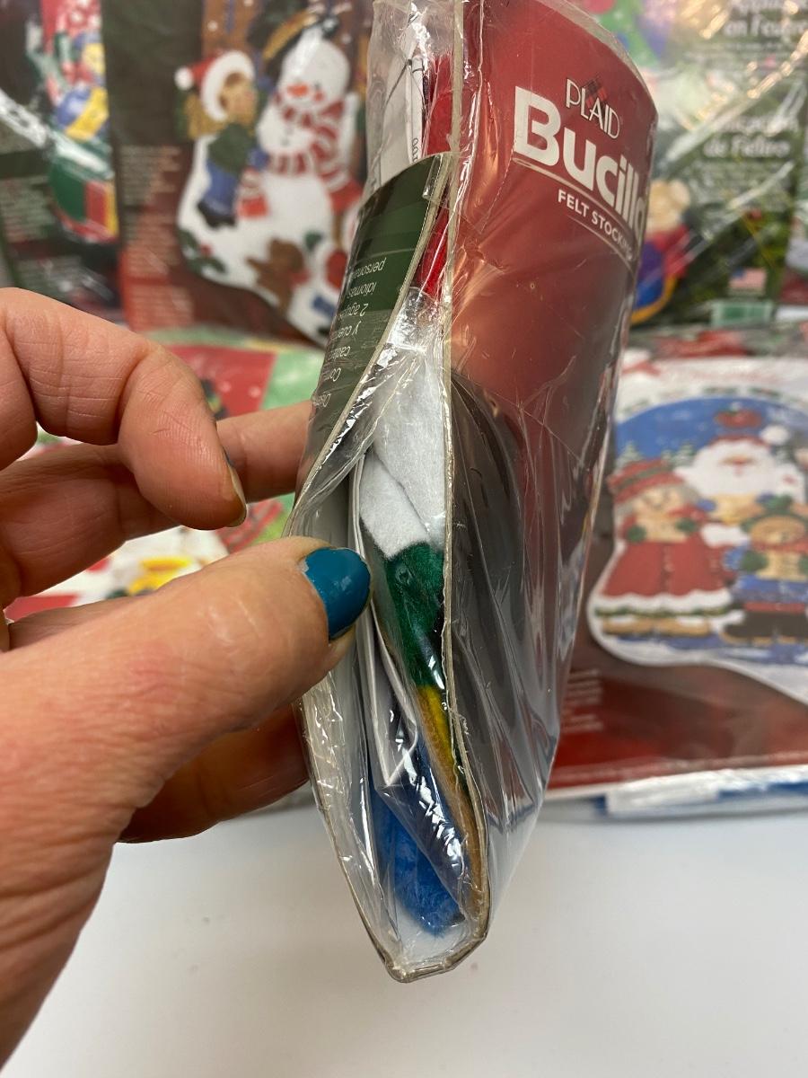 Lot of 7 Bucilla felt stocking craft kits. All but one are unopened. The one that has been opened looks to be complete. Sets come with instructions and the needed materials to make holiday stocking.