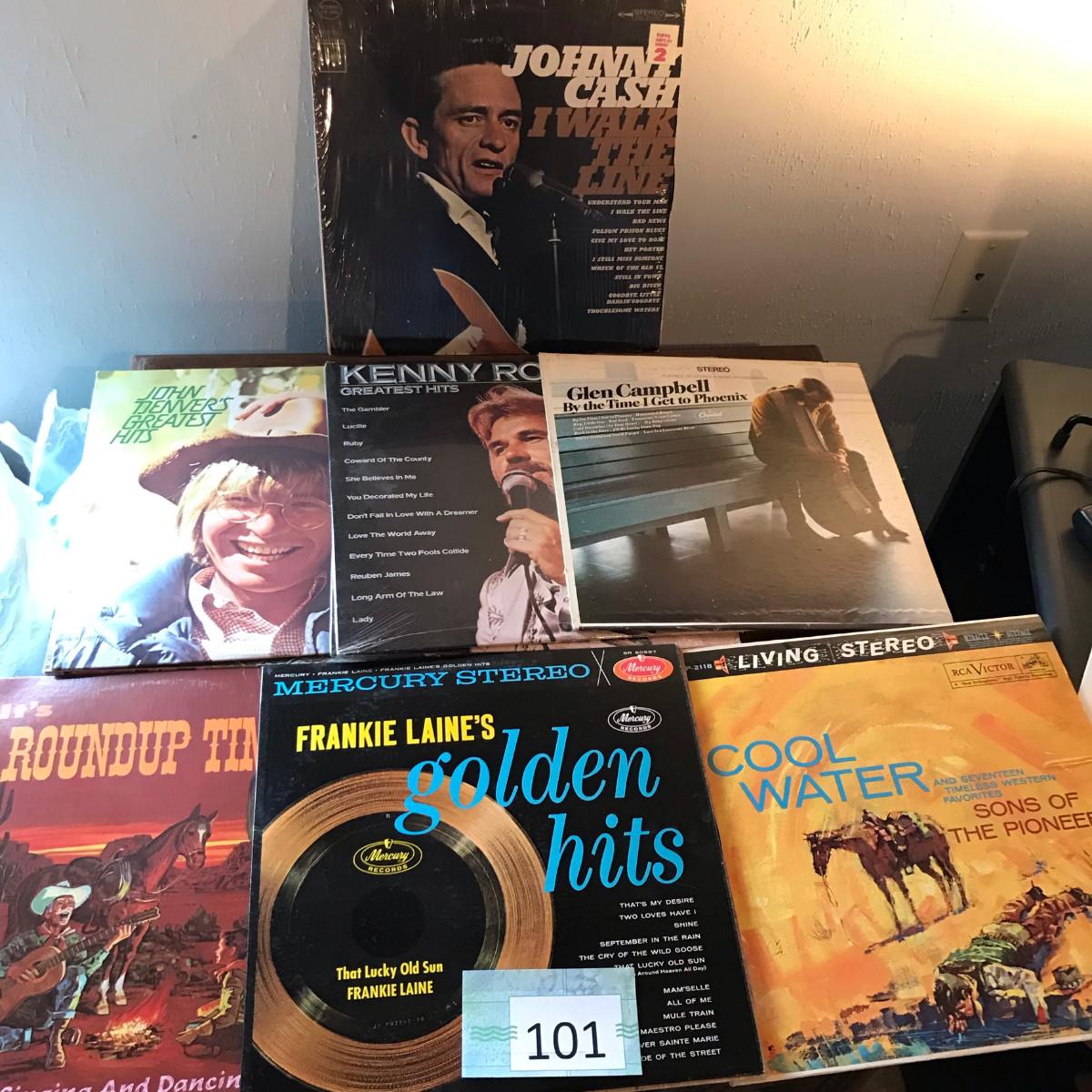 Johnny Cash, John Denver, Kenny Rogers, & Sons of the Pioneers! Sleeves are all in good shape, records clean!
