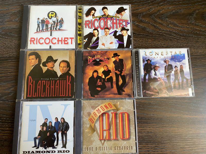 7 Country Music CDs. Included artists are Ricochet (2), Black Hawk (2), Diamond Rio (2), and Lonestar. All CDs are in great condition.