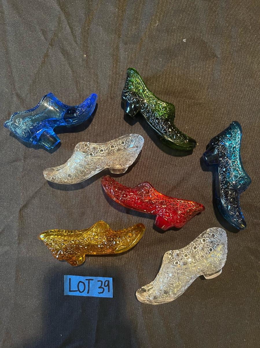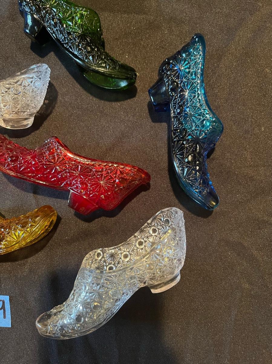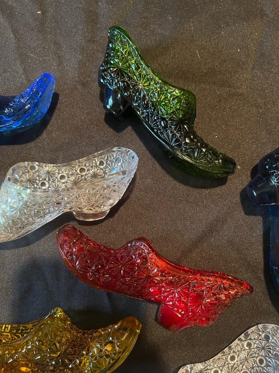 Lot of (7) Fenton colorful glass heels/boots
