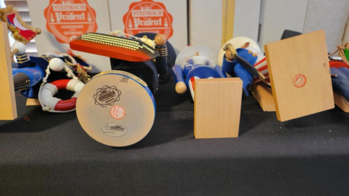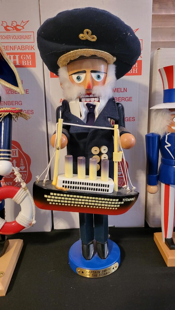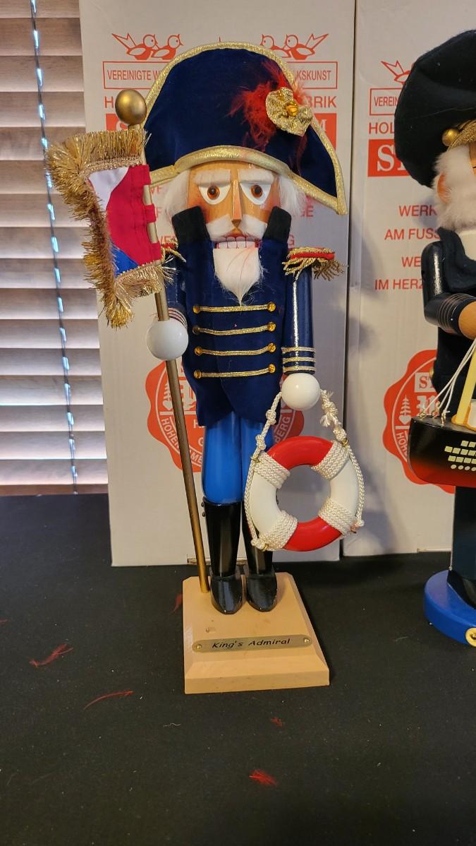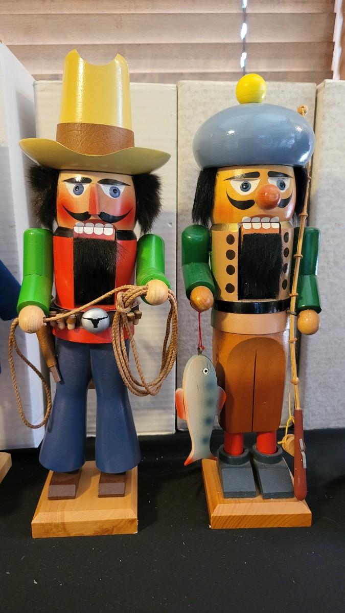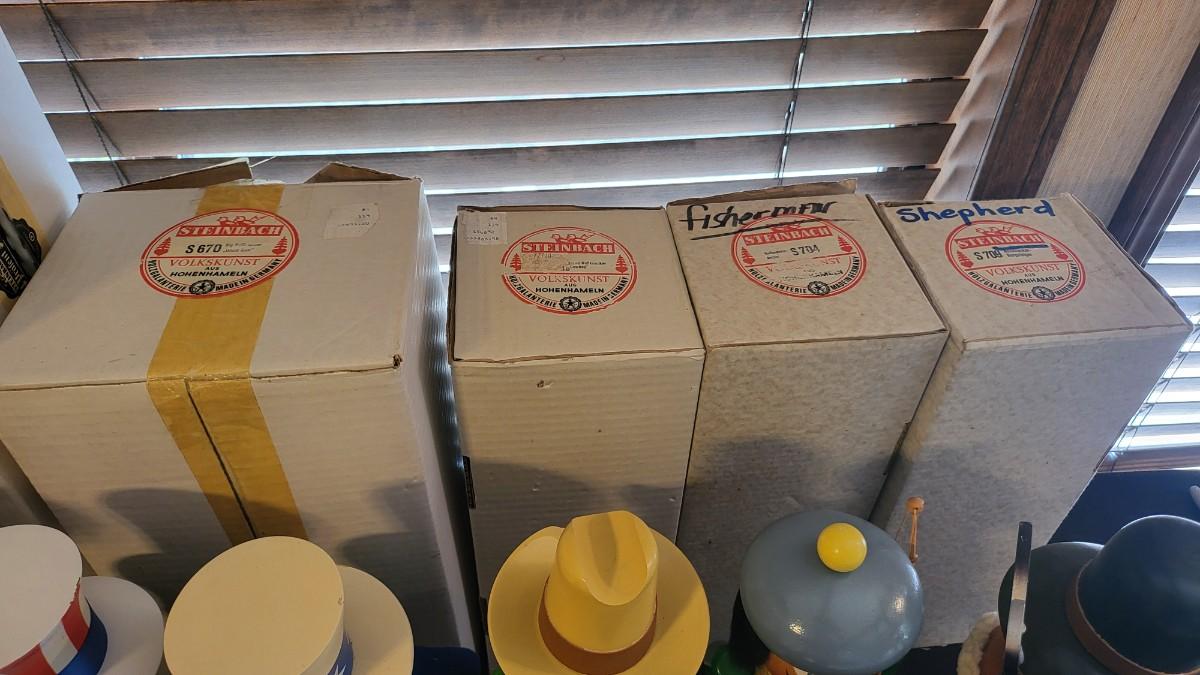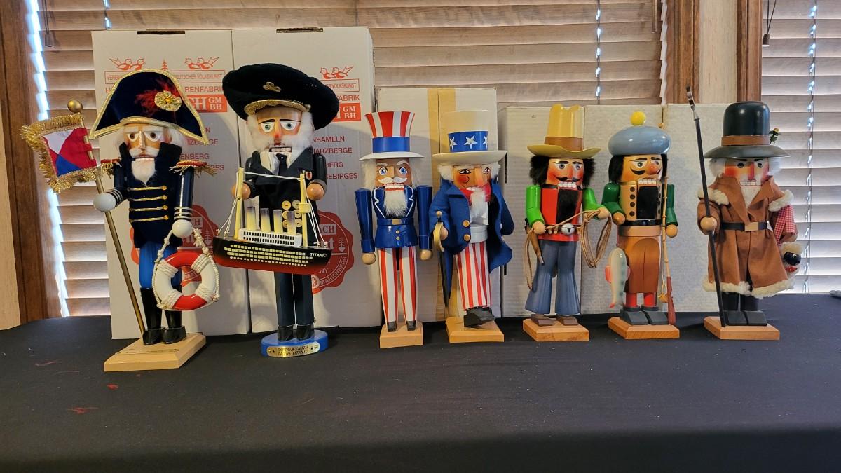This lot includes 2 larer nutcrackers & 2 Uncle Sam's. 1 uncle Sam is not Steinbach. The measure 14" to 18" tall. All in good condition. All stored in original boxes for the last 15 years!