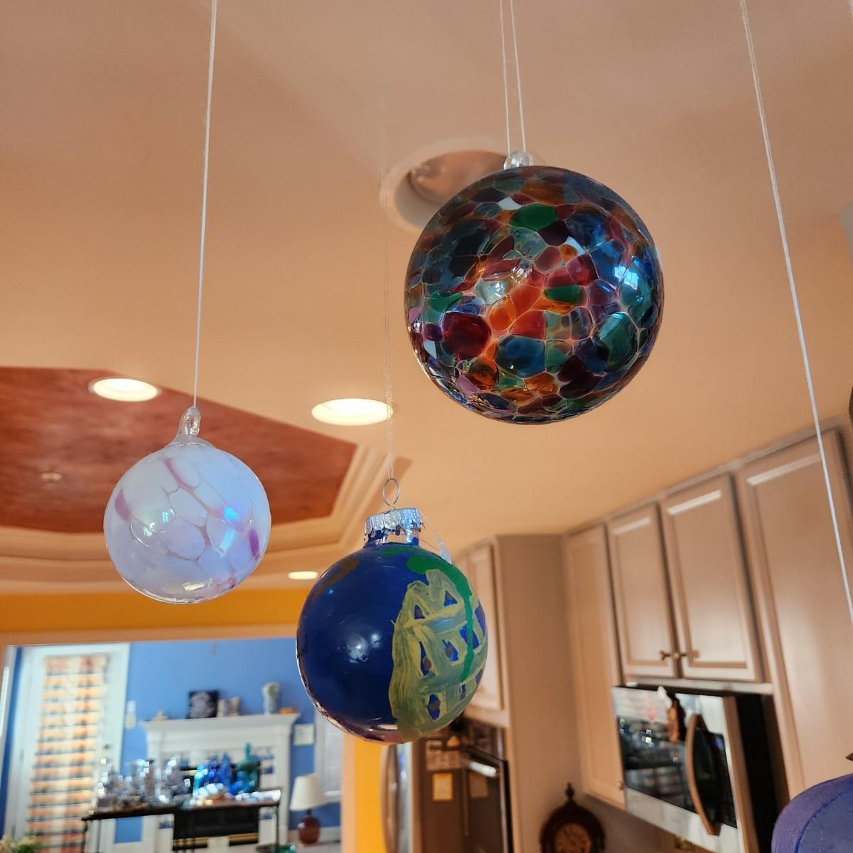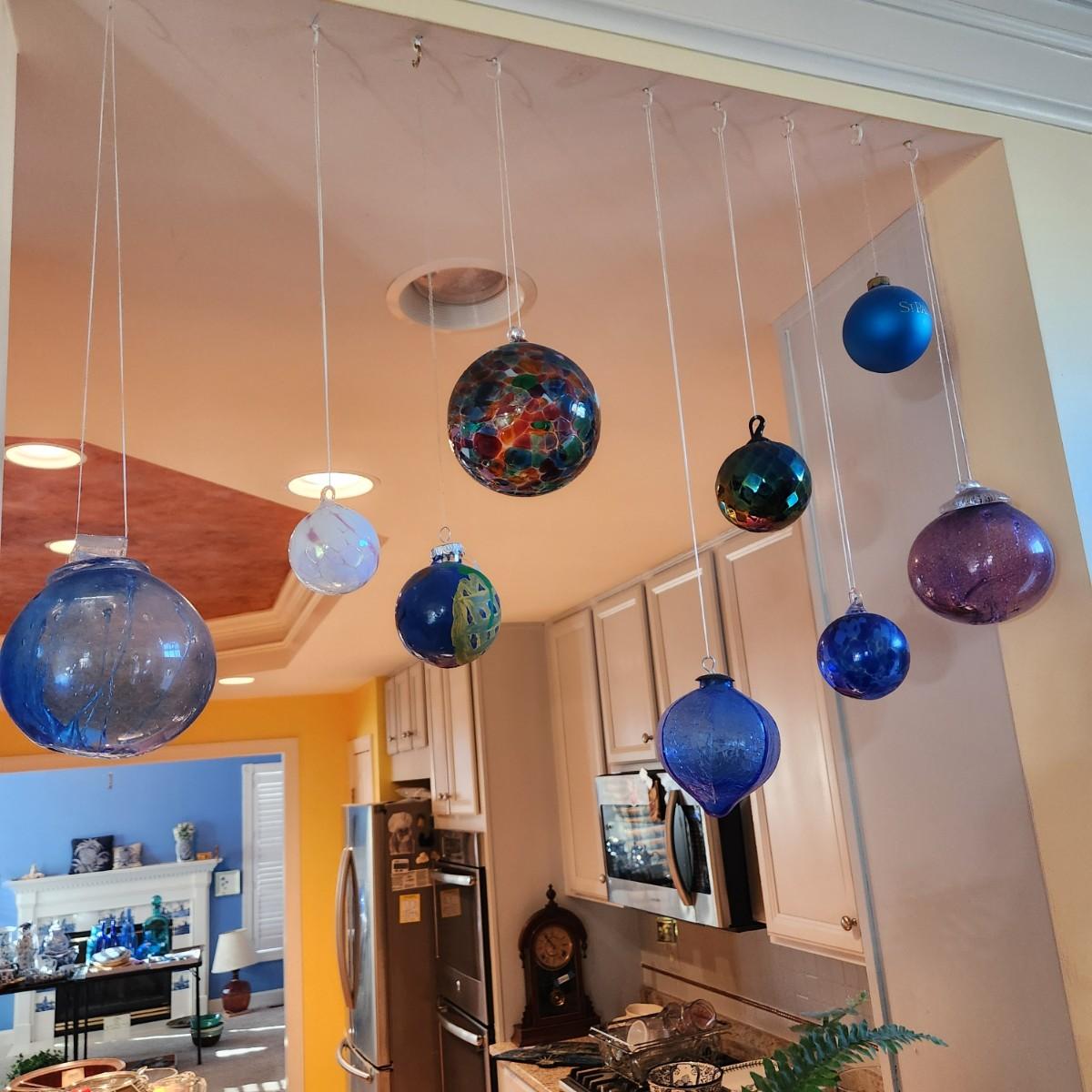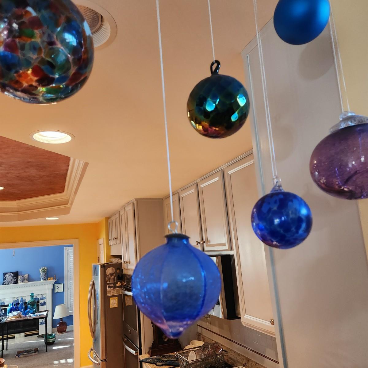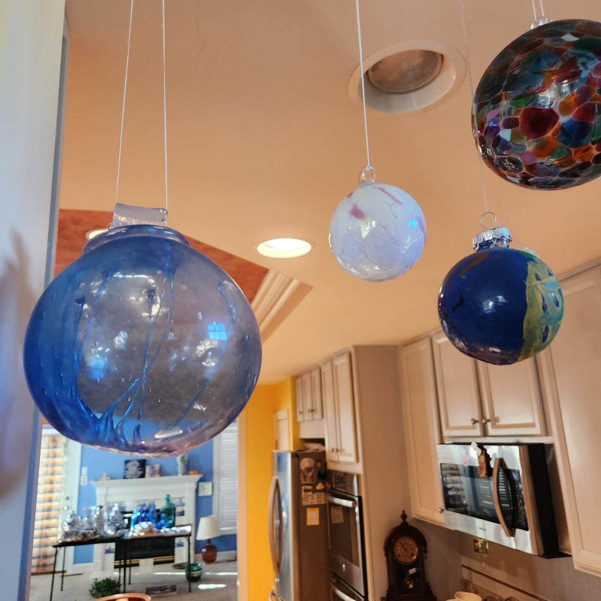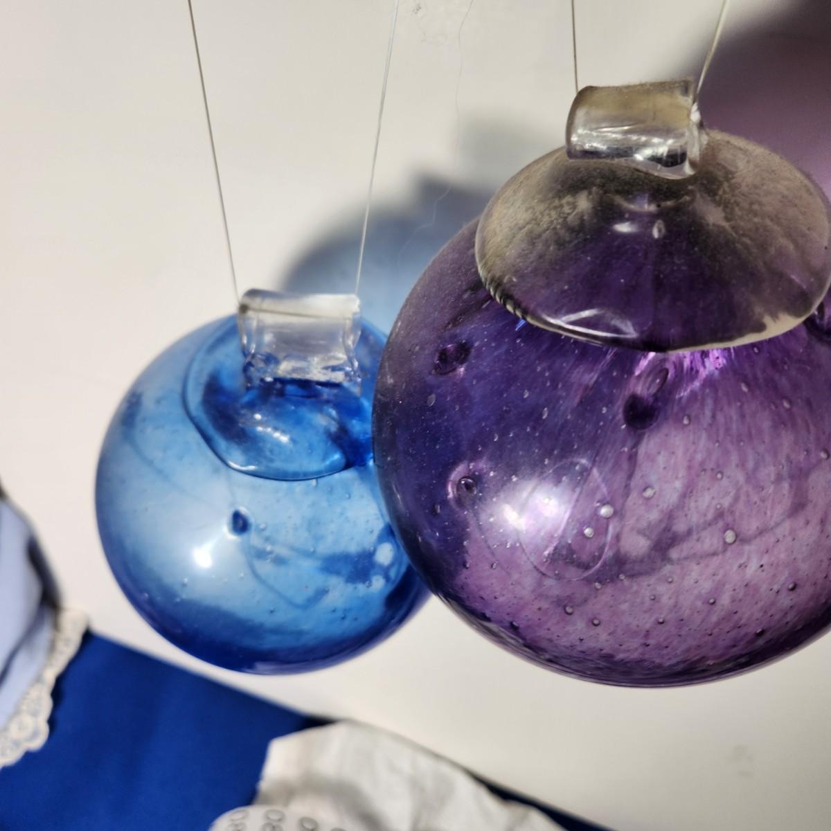 Lot of 7 Handmade Glass Decorative Balls + 2 ornaments