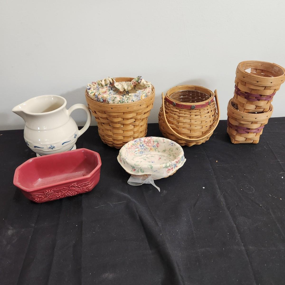 Lot of 7 Longaberger & Staker Baskets & Pottery