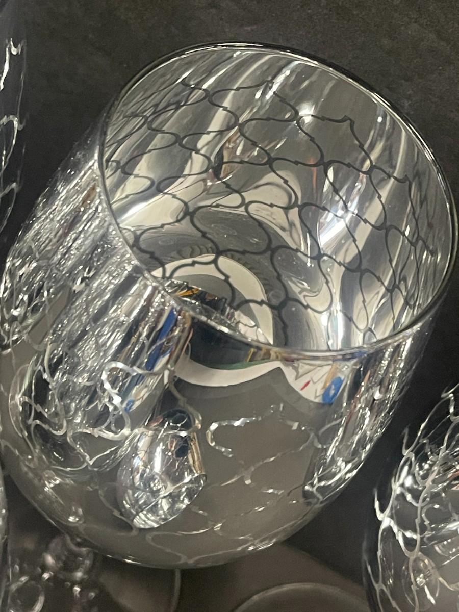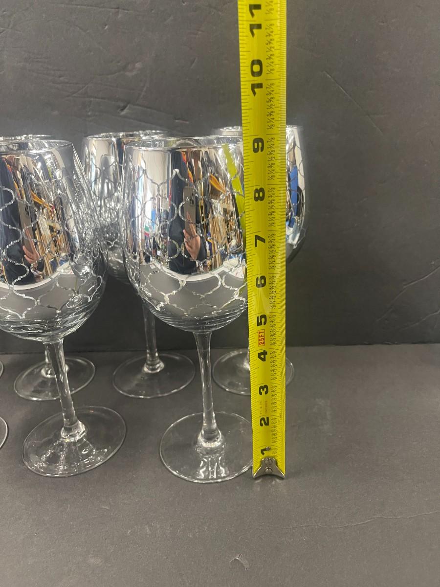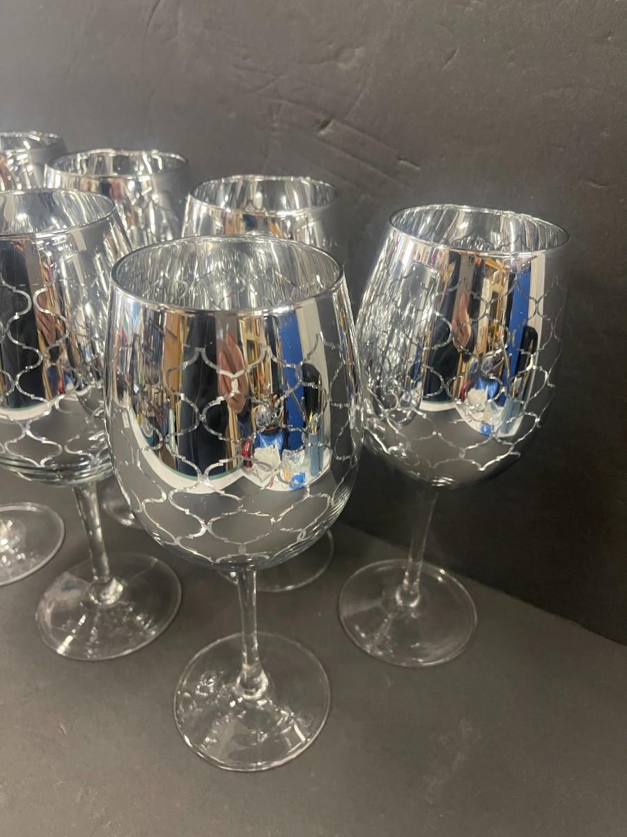 Lot of 7 Mirrored Glass Trellis Pattern Wine Glasses