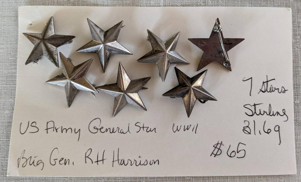 Lot of 7 Sterling Silver US Army General Stars WWII