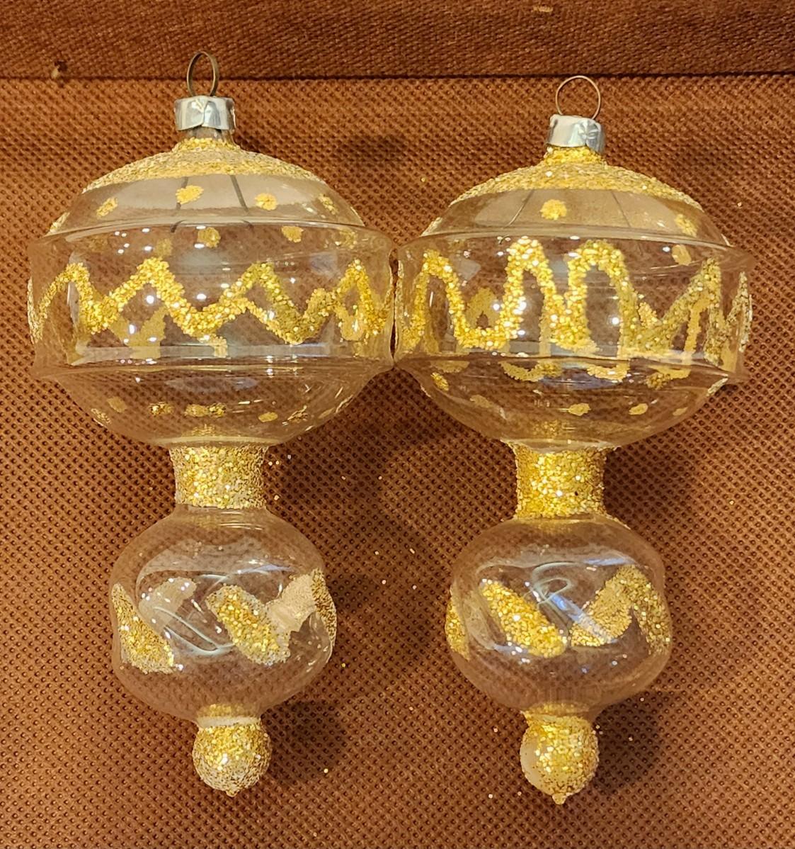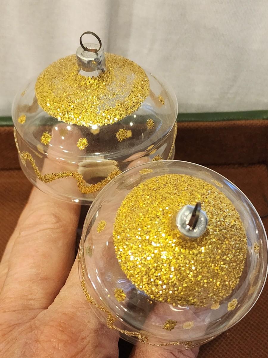 2 clear glass and gold glitter- Germany.
