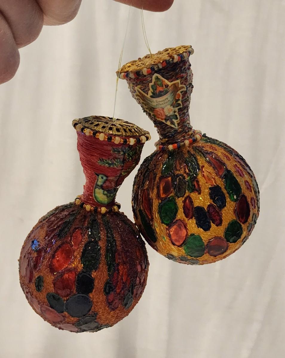 2 stained glass ornaments