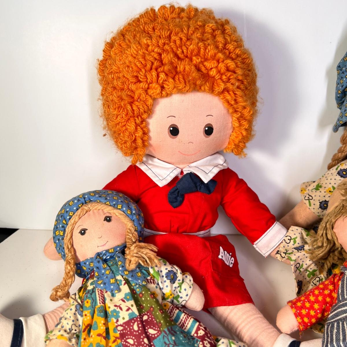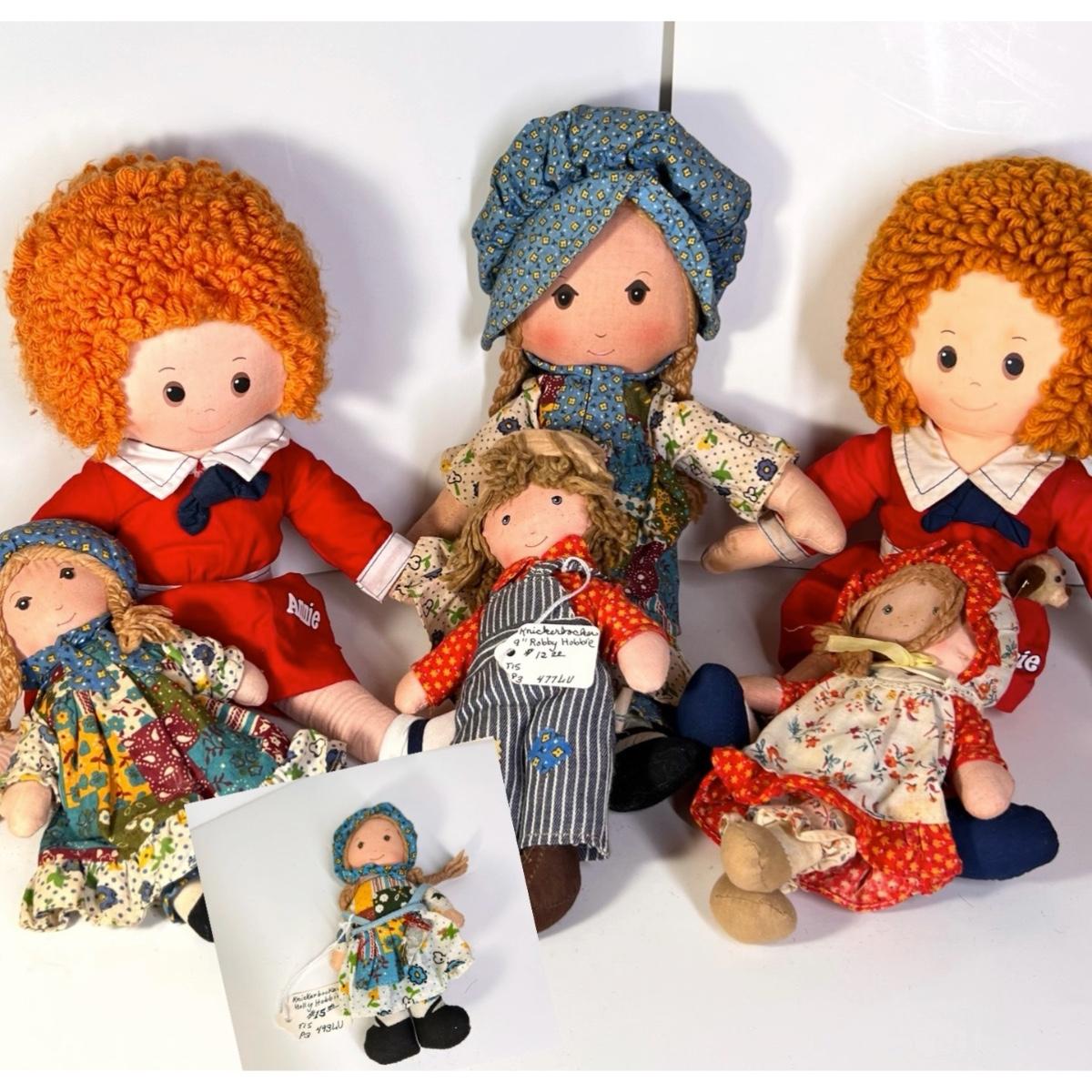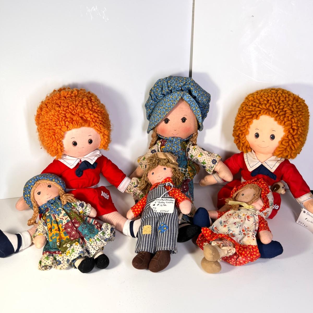 7 soft dolls in various sizes. One of the Annie’s has her dog Sandy