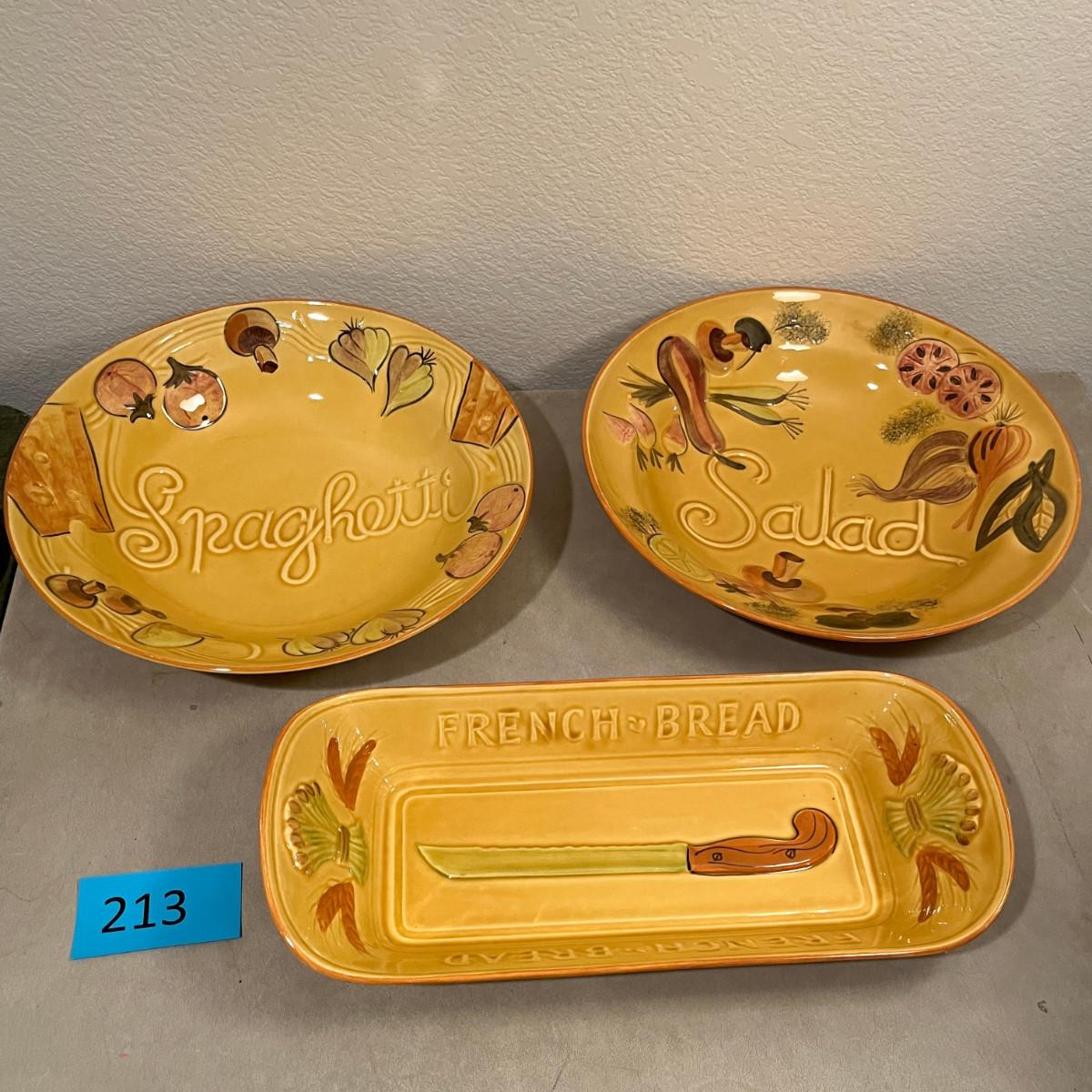 Spaghetti, Salad bowls & French Bread Tray. All in good condition.