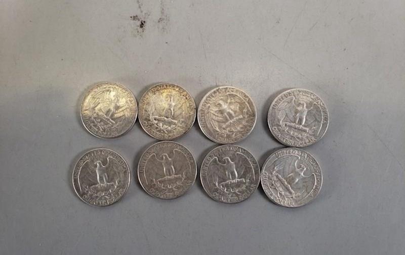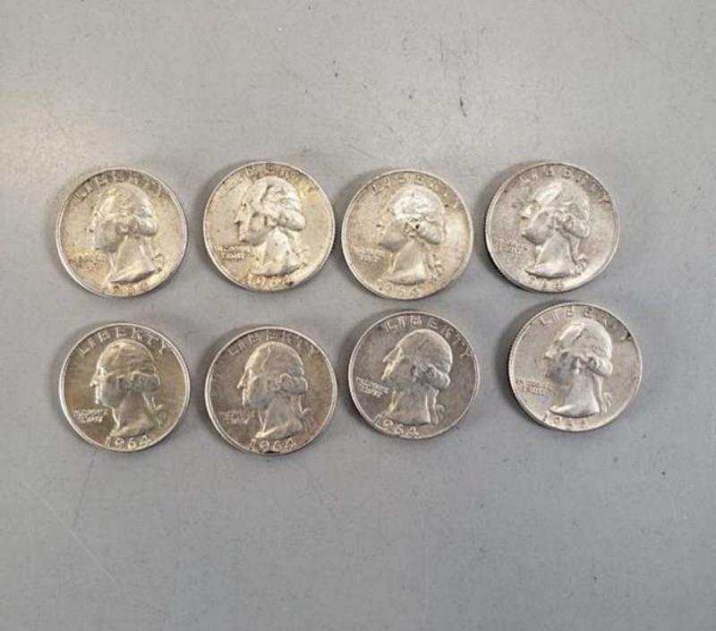 Lot of 8 1964 and under .925 silver U S quarters