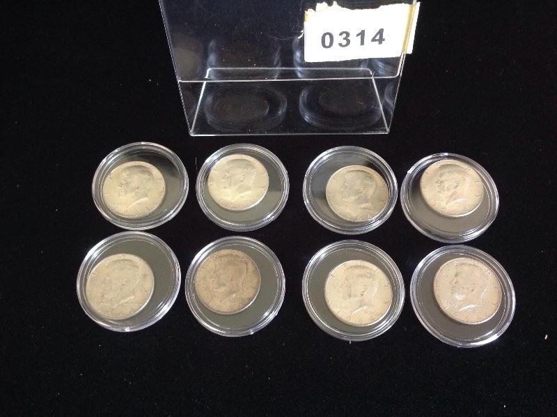 Lot of 8 1964 Kennedy Half Dollars. Circulated