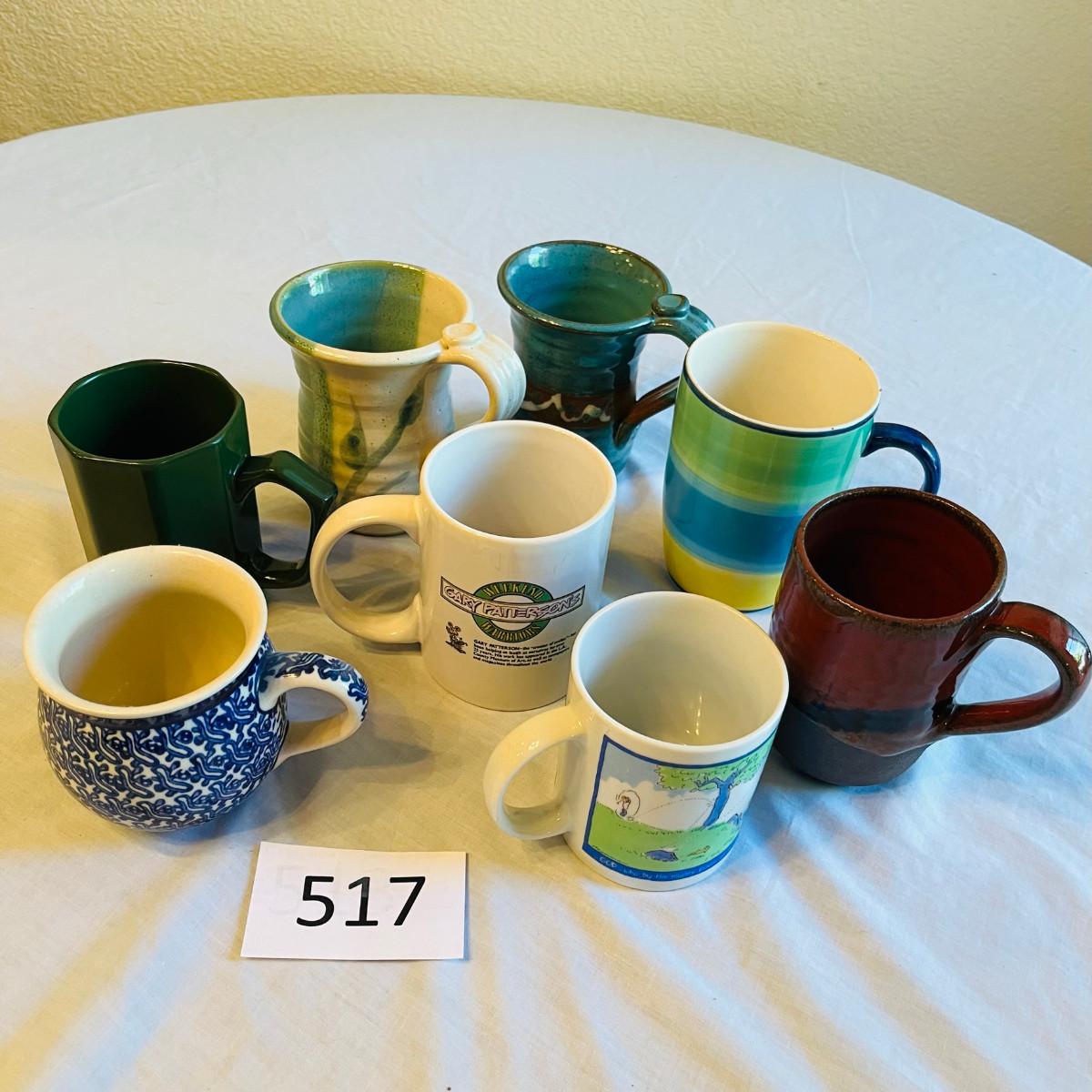 Lot of 8 Coffee Mugs Poland Pottery & Artist Pottery