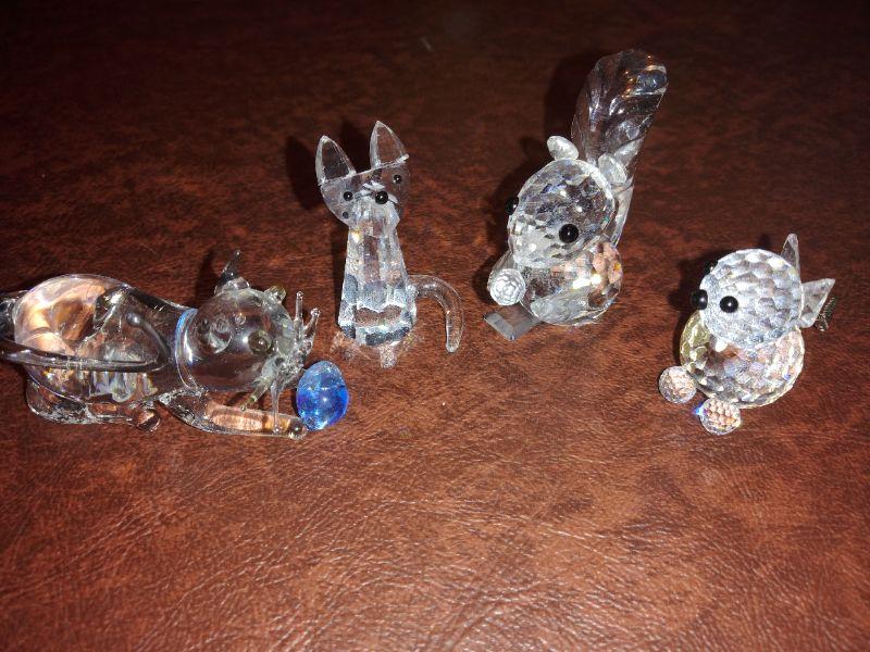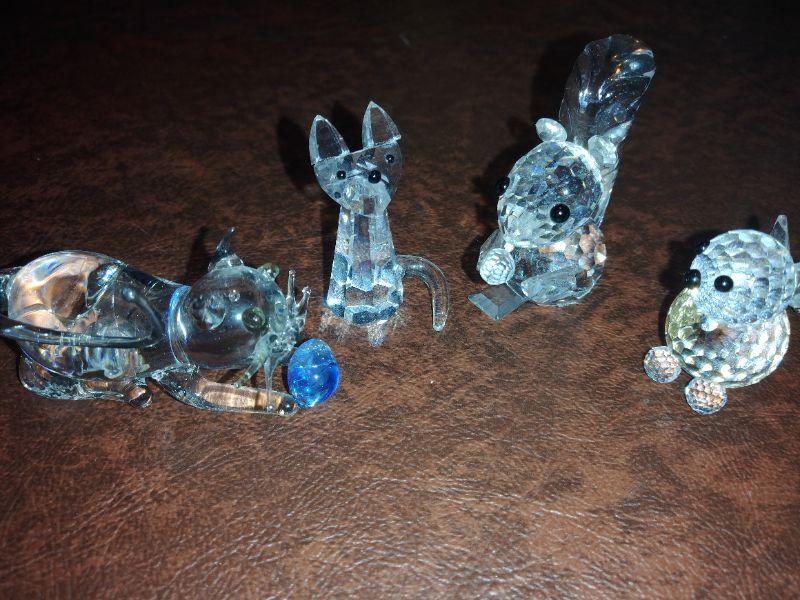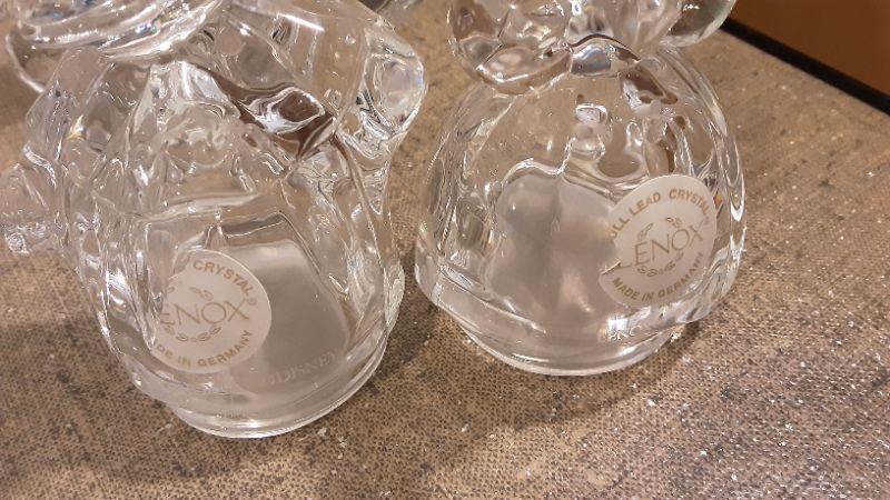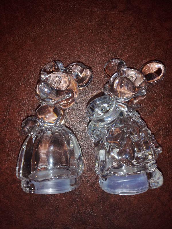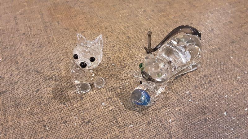 Lot of 8 Crystal and Glass Figurines includes: Mickey and Minnie Lenox figurines, Minnie Goebel, and crystal cats and squirrel