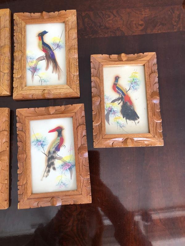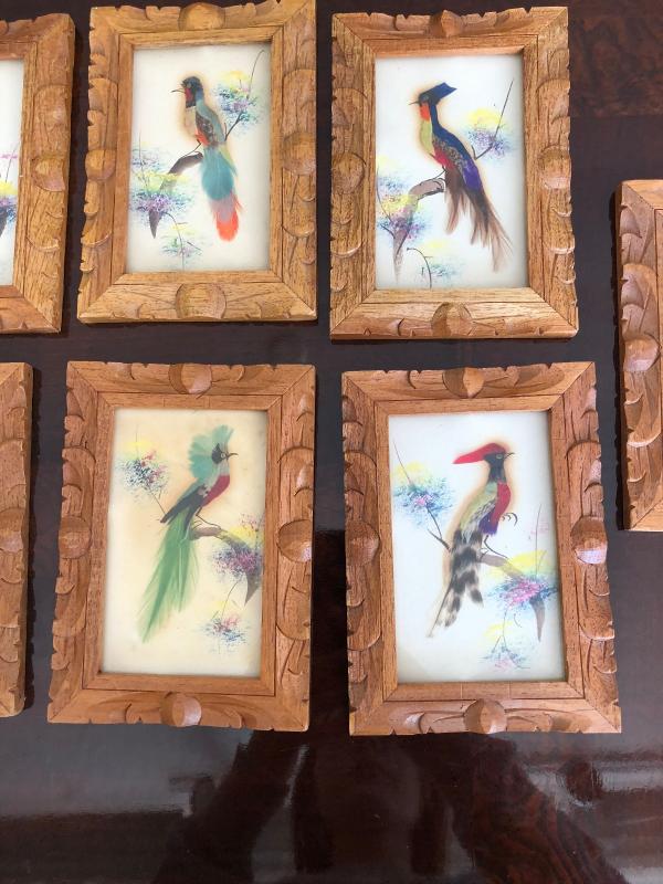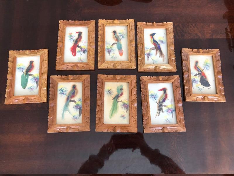 Lot of 8 Feather Made Bird Framed (Item 2016)