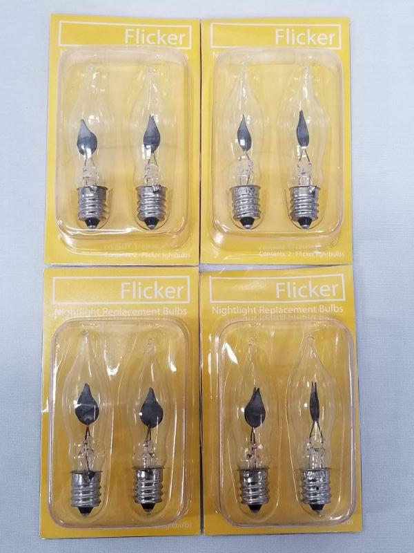 Lot of 8 Flicker/Candle Light Bulbs - 1 Watt, Clear - New