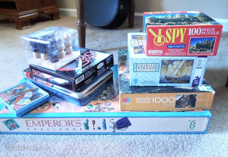 Emperor's Challenge board game,Back Spin, Tic Tac Toe, Deck of Cards, Brain Teaser, 3 opened jigsaw puzzles.