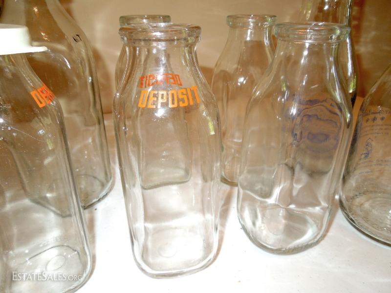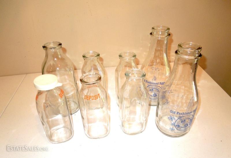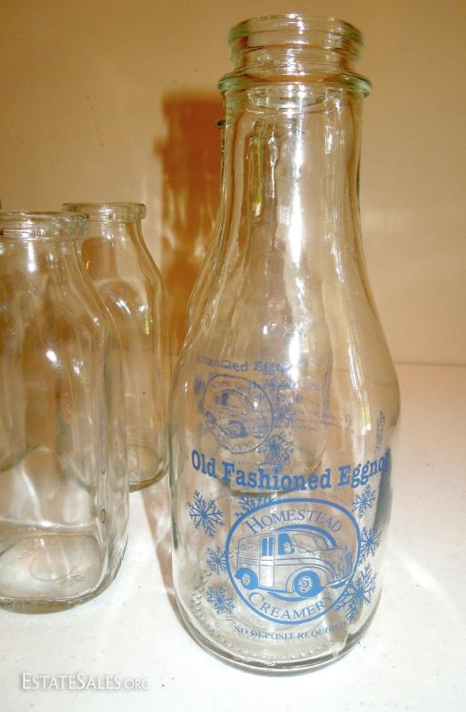 Two say "Homestead Creamery Old Fashioned Egg Nog" two say "Deposit" and four have no mark. No chips and clean.
