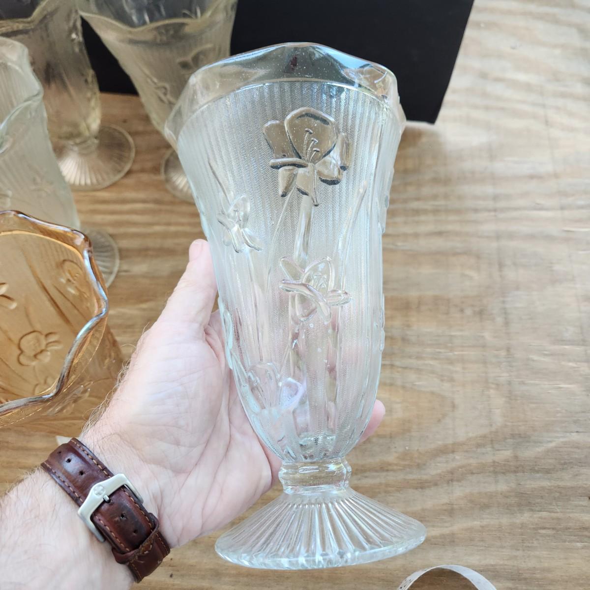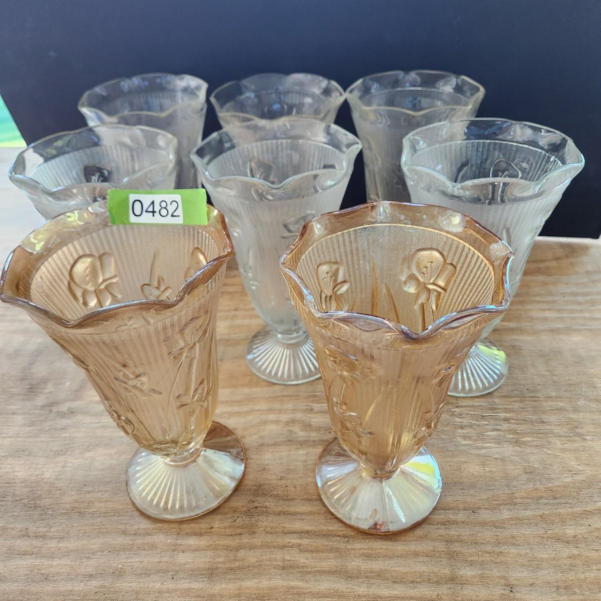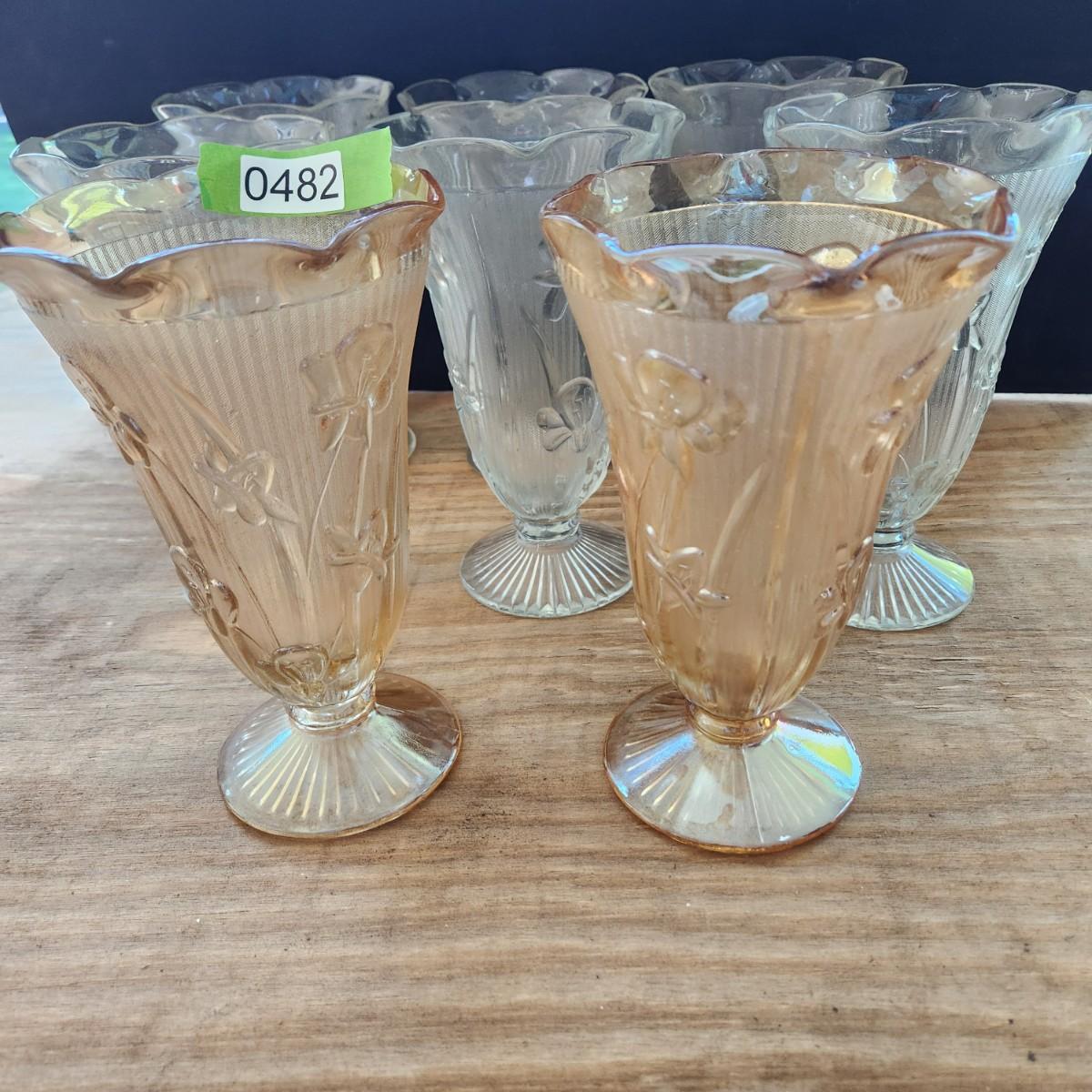 Lot of 8 Iris Herringbone Vases 6 Clear 2 iridescent