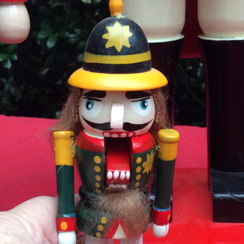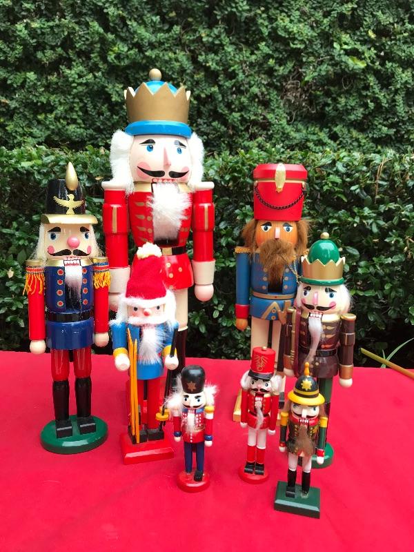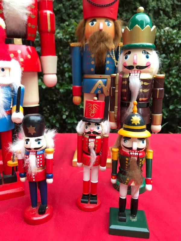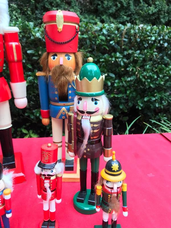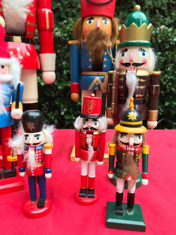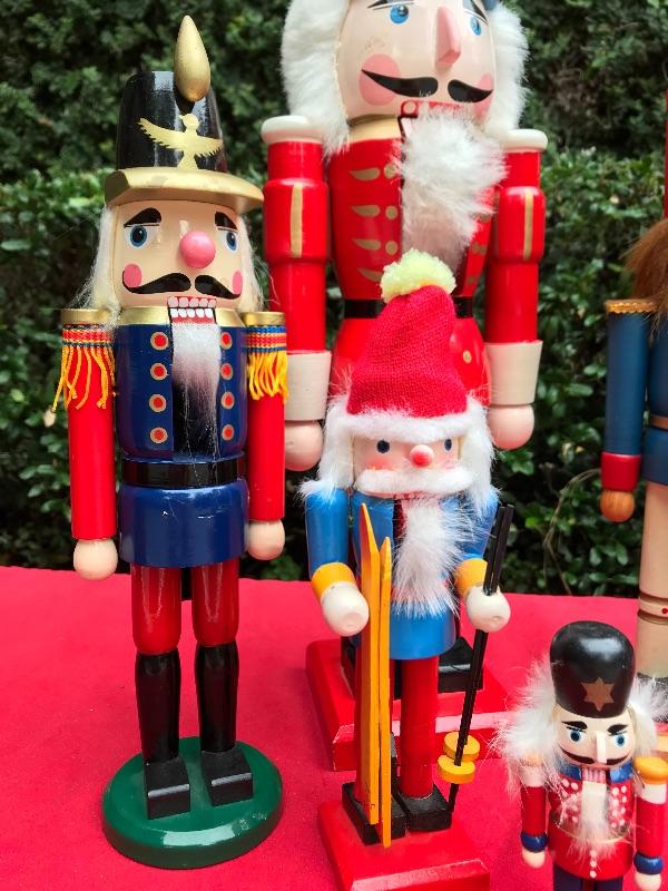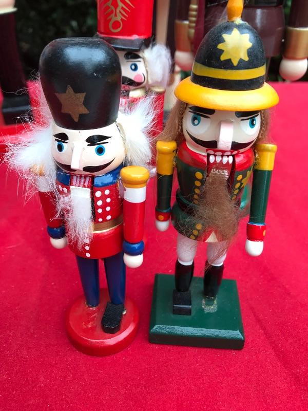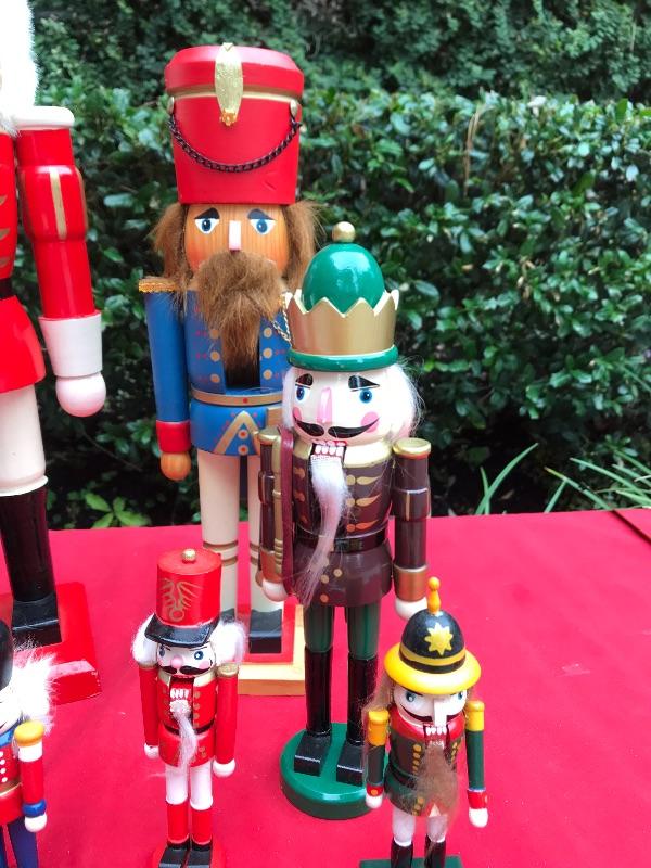 If you don’t have a nutcracker then start your collection with this lot. These nutcrackers are made in China. Very fun grouping, They range in size from smallest 5.5 inches to tallest 19.5 inches. Two of the small cracker each have one missing foot.