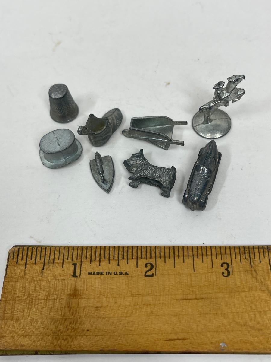 Lot of 8 pieces for Monopoly Board Games - thimble, hat, iron, shoe, dog, cowboy, car, wheelbarrow