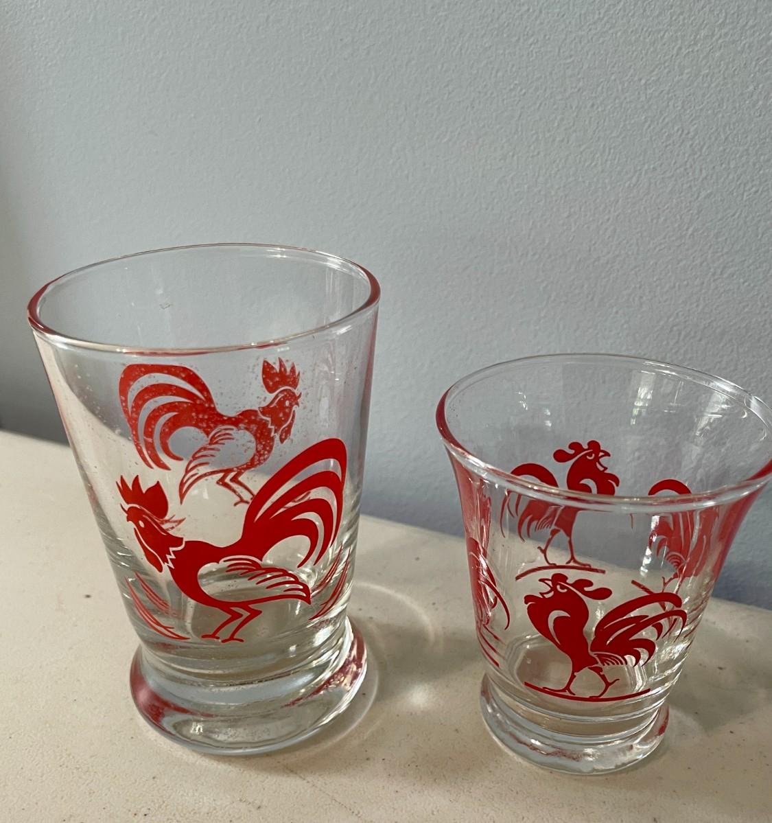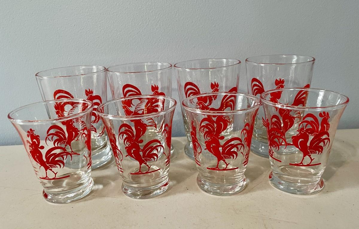 Lot of 8 rooster glasses