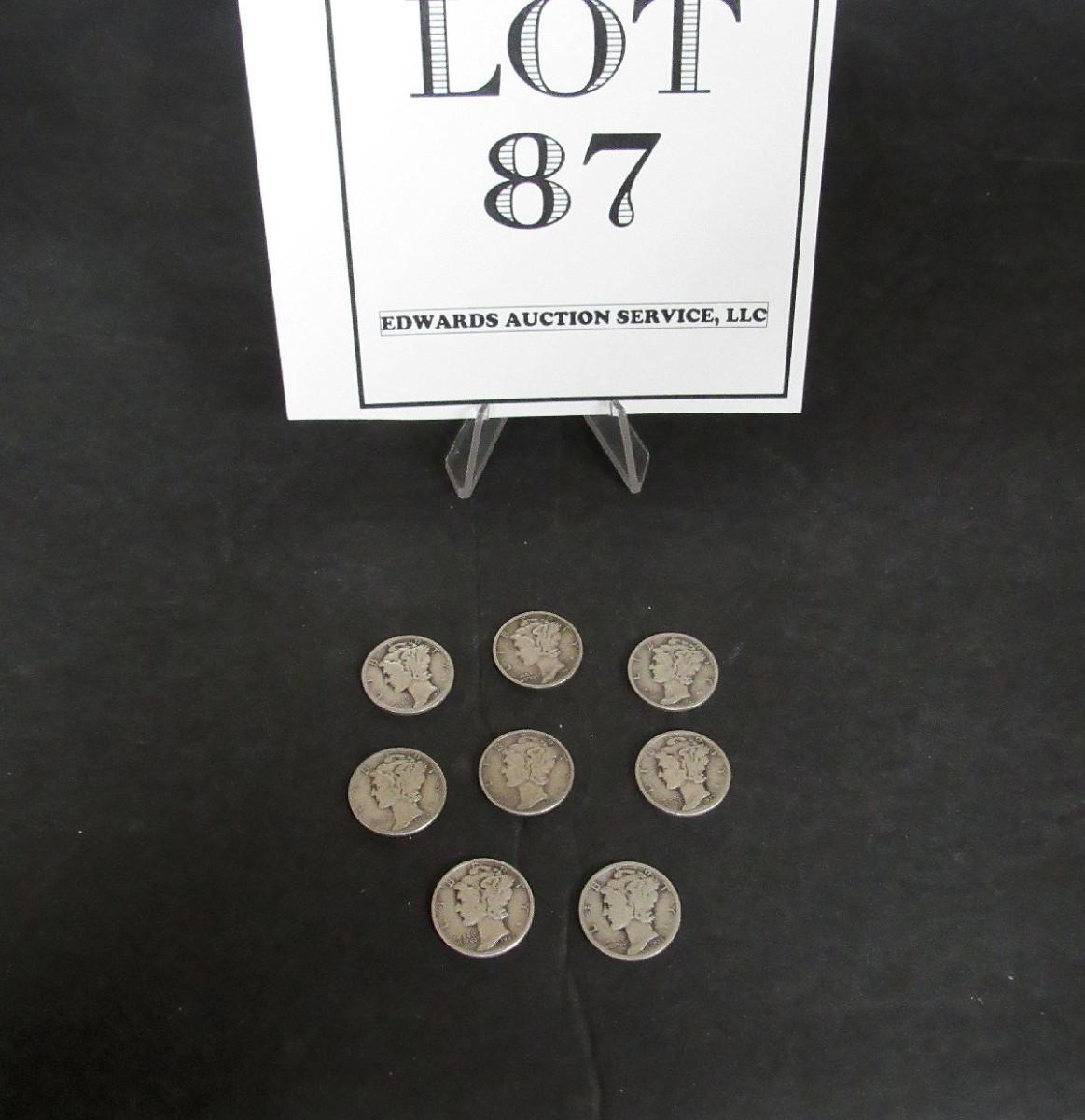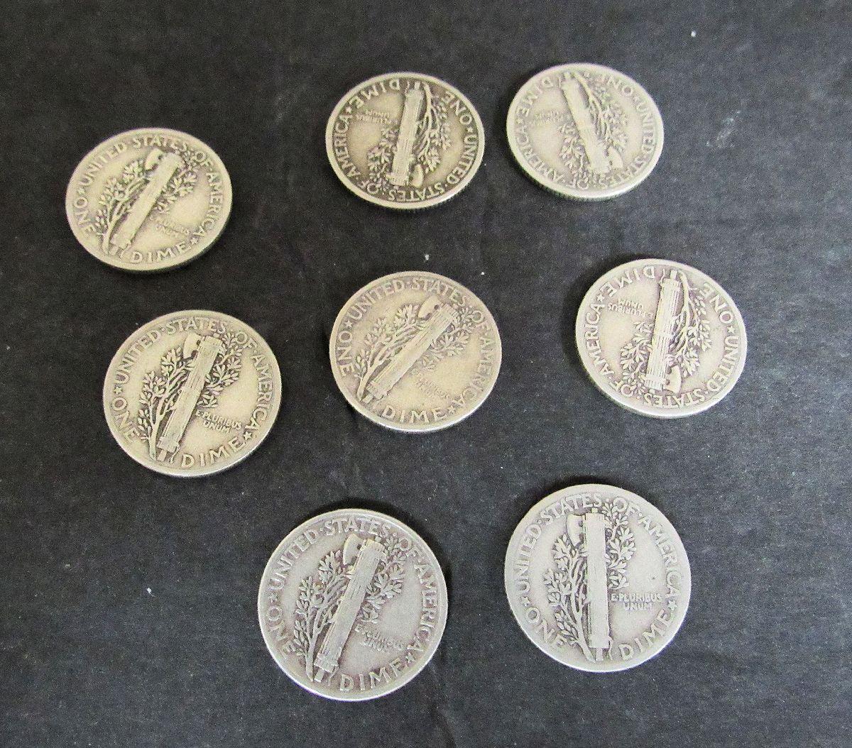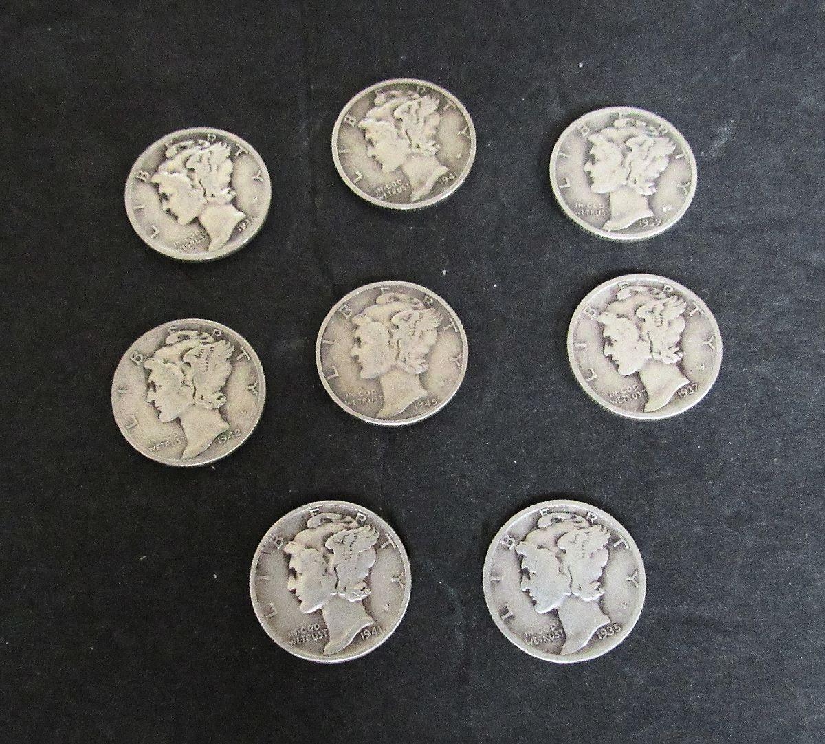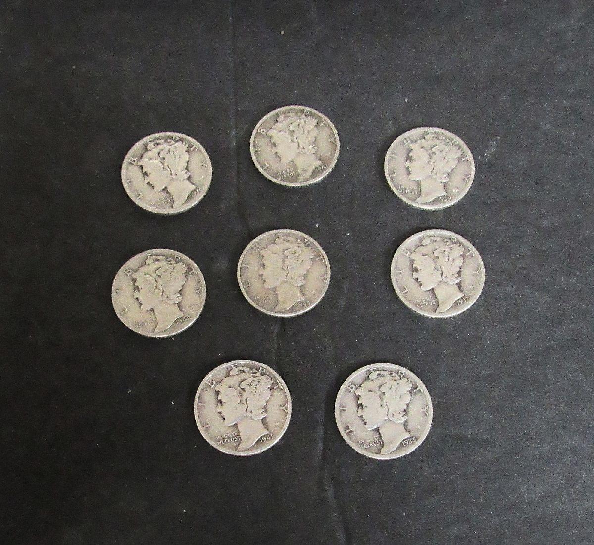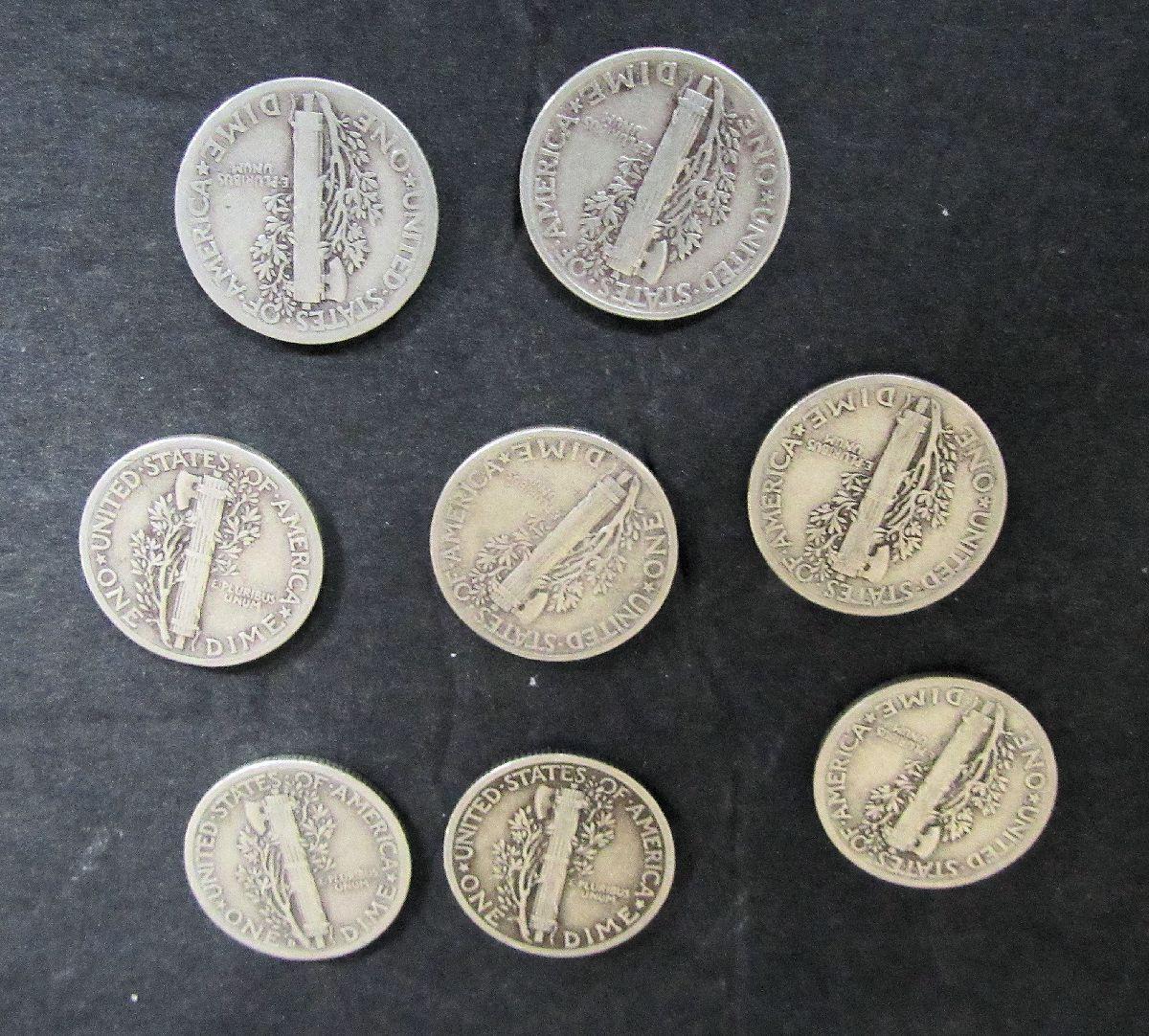 Lot of 8 Silver Mercury Dimes, Random Dates