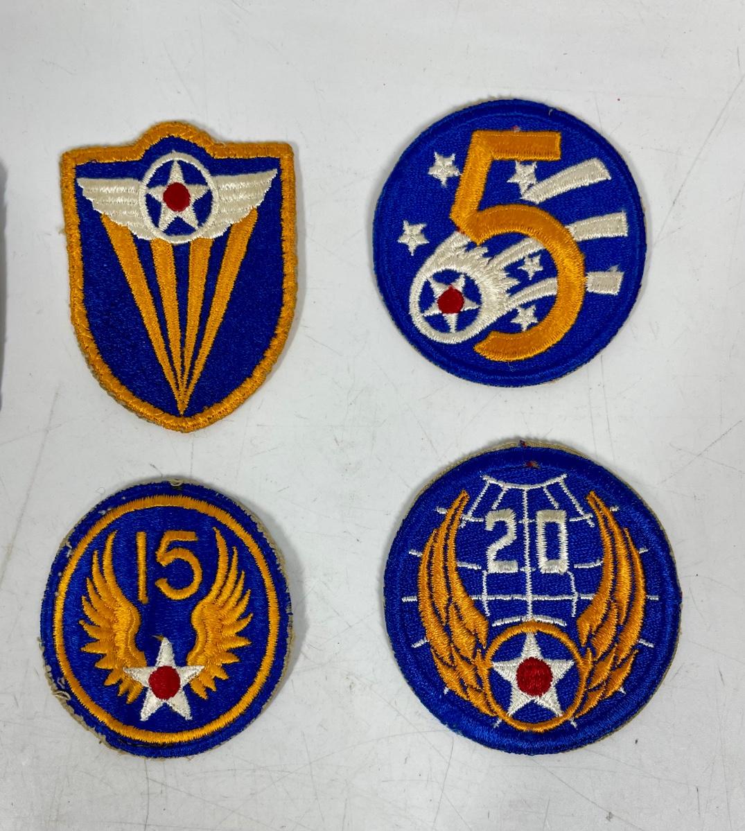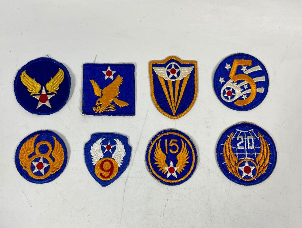 Includes: US Army Air Corps shoulder patch, 2nd Air Force, 4th Air Force, 5th Air Force, 8th Air Force, 9th Air Force, 15th Air Force, and 20th Air Force. All patches in excellent condition.