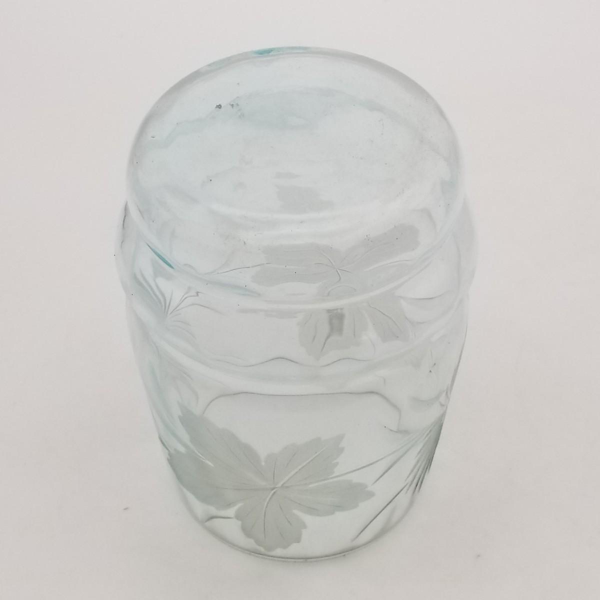 Lot of 8 Vintage Glasses, No Cracks or Chips: Set of 3 Blue Etched Cut Glass Tumblers Leaf Chrysanthemum Diamond Optic, Set of 5 Roly Poly Tumbler Glasses mid-20th Century Grape Grapevine Grape Leaves