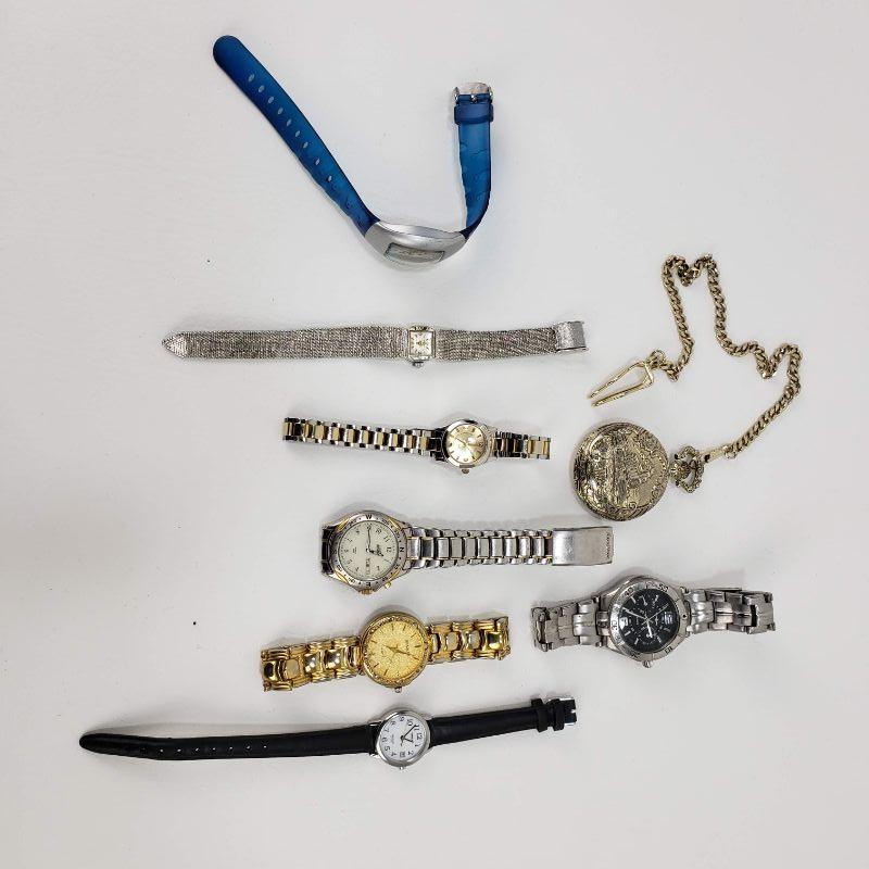 Appear to all be Quartz movement. None are running - Armitron, Timex, West, Bradley, Brut and others