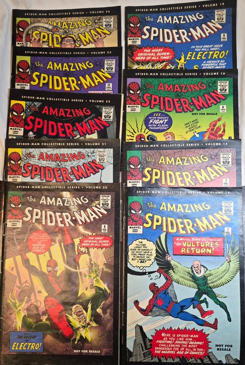 Lot of 9 2006 The amazing spider man comic books- collecible series volumes;14,15,16,19,20, 21, 22, 23, 24. All in good condition