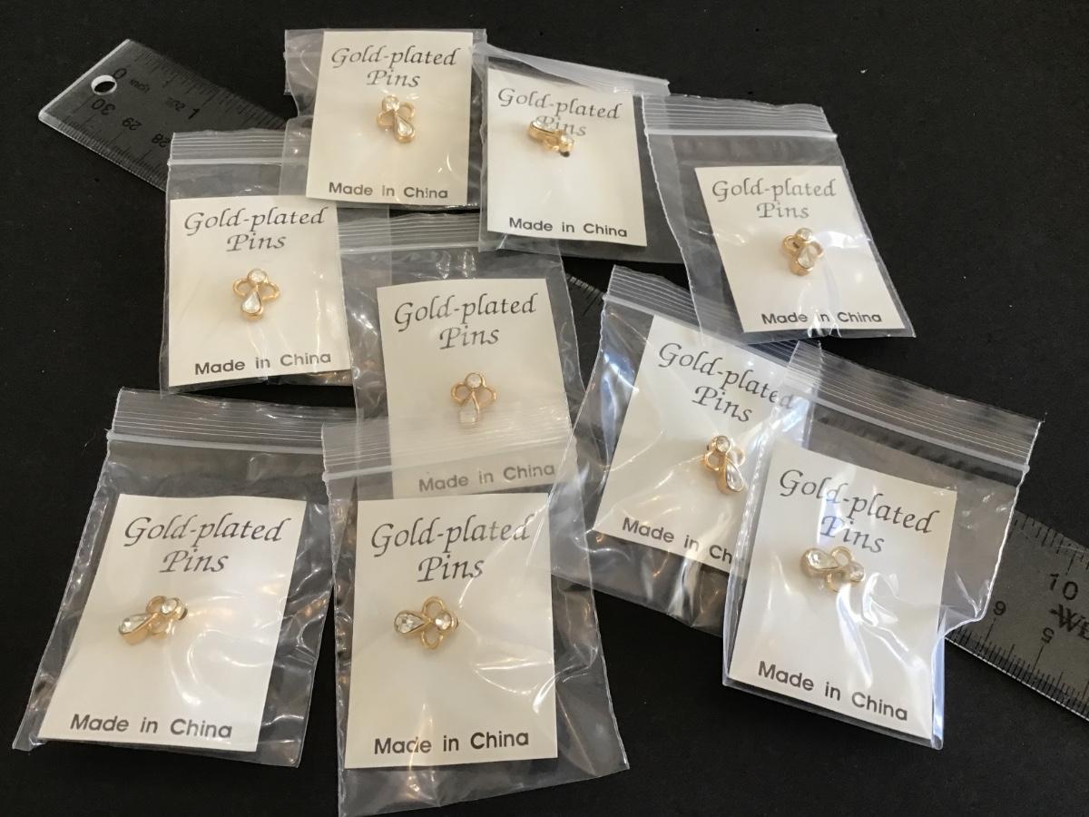 Lot of 9 Angel Crystal Plated Pins. New Vintage