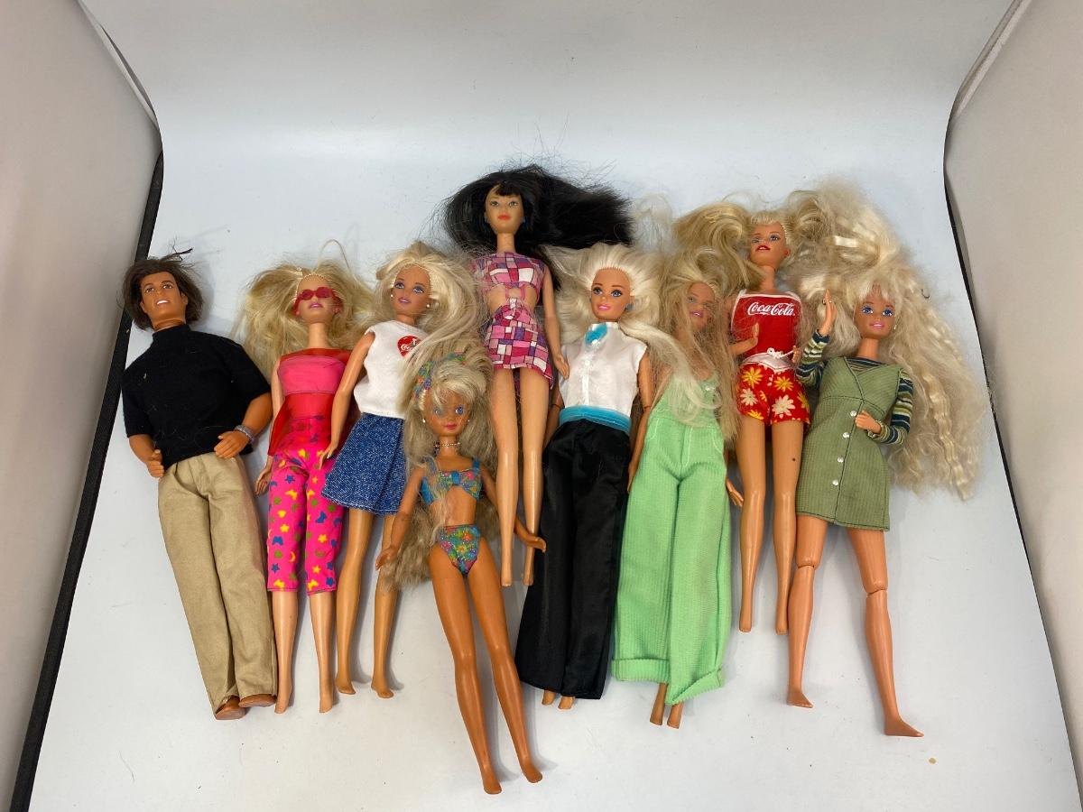 Lot of 9 Dressed Barbie Ken Skipper Fashion Dolls