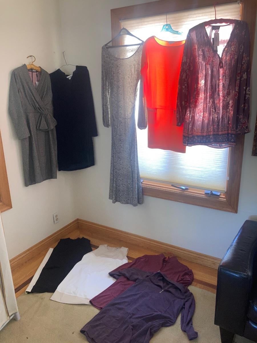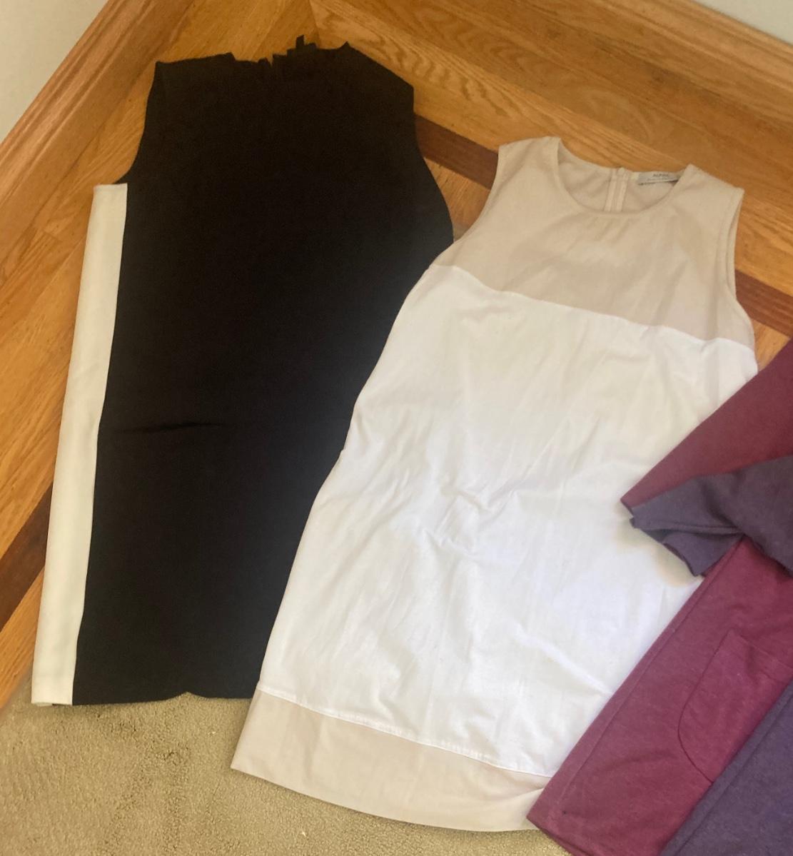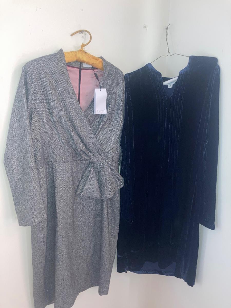 Lot includes 2 NWT dresses and 7 in like new condition.. 9 dresses total all size medium except for 1 size 14 (black & white NWT )