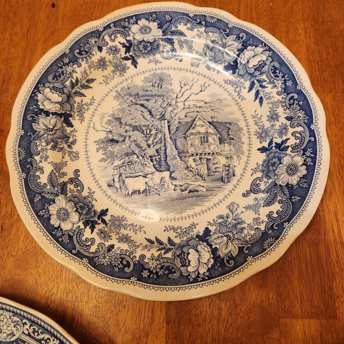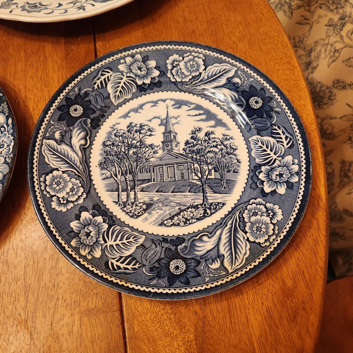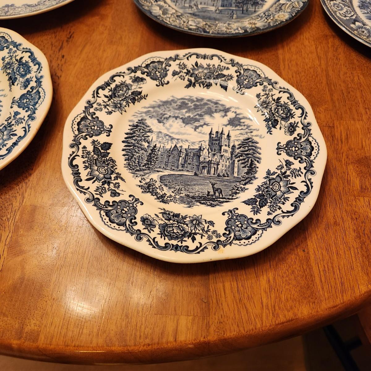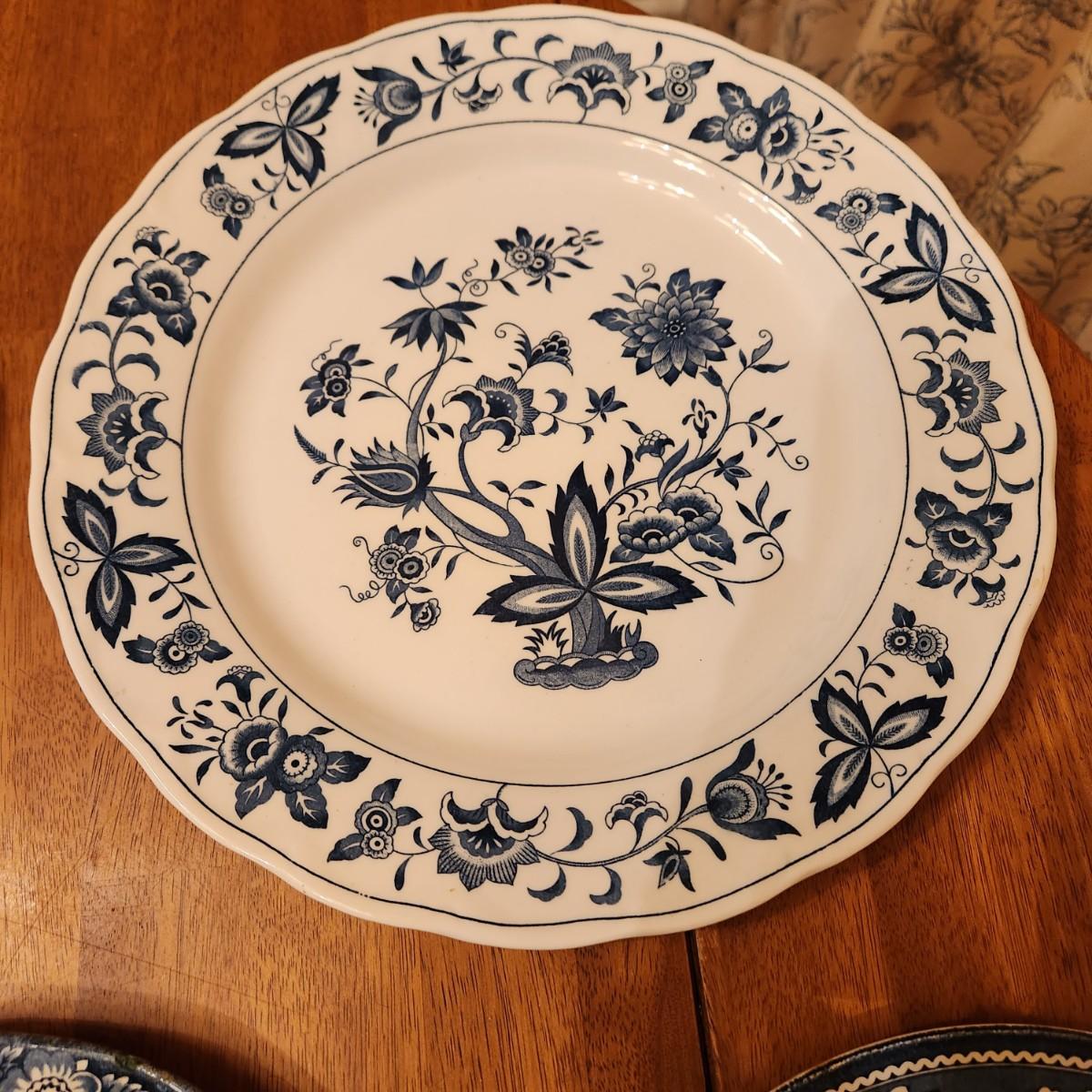 Lot of 9 Flow Blue Plates Spode, Blue Bonnet, Wedgwood, Liberty Blue