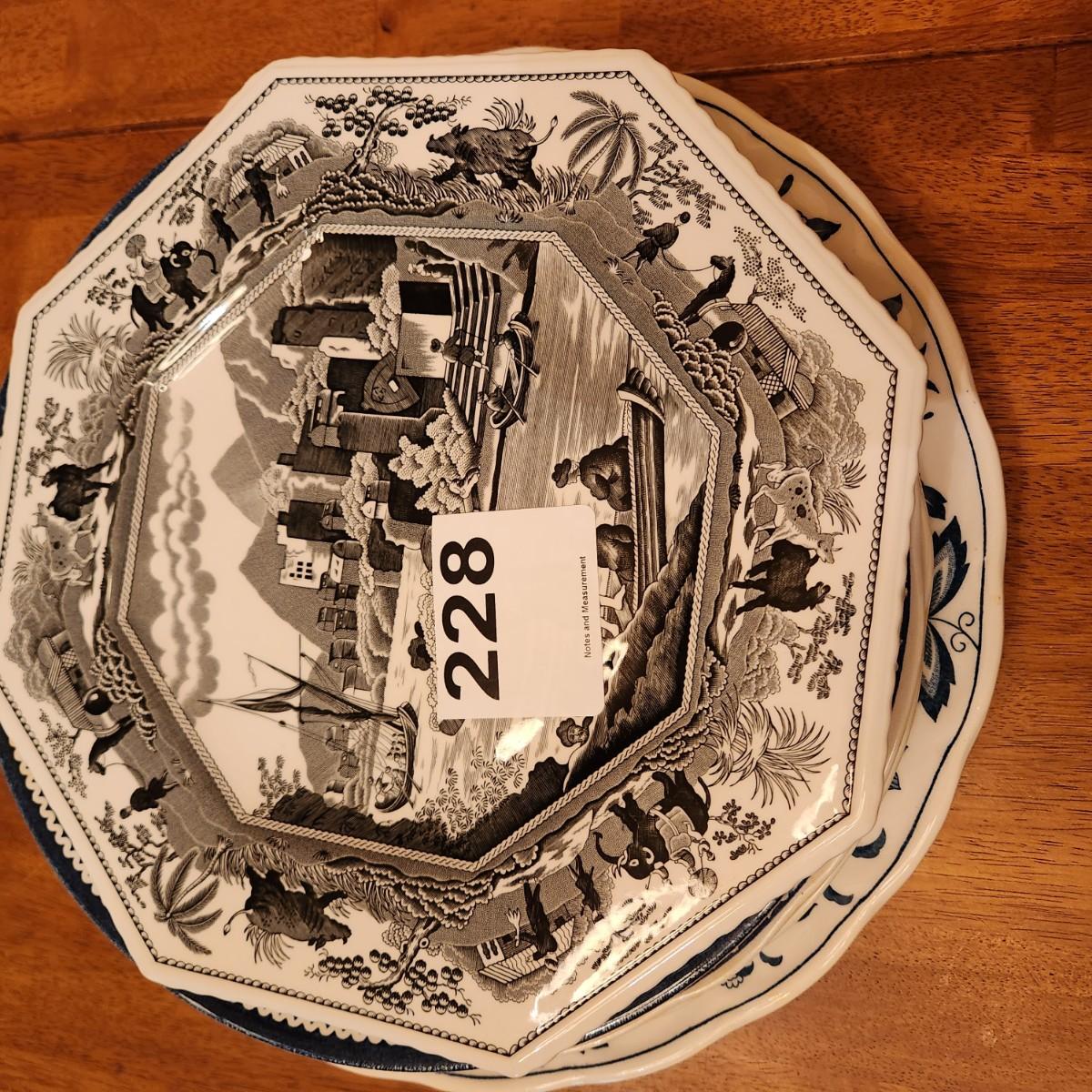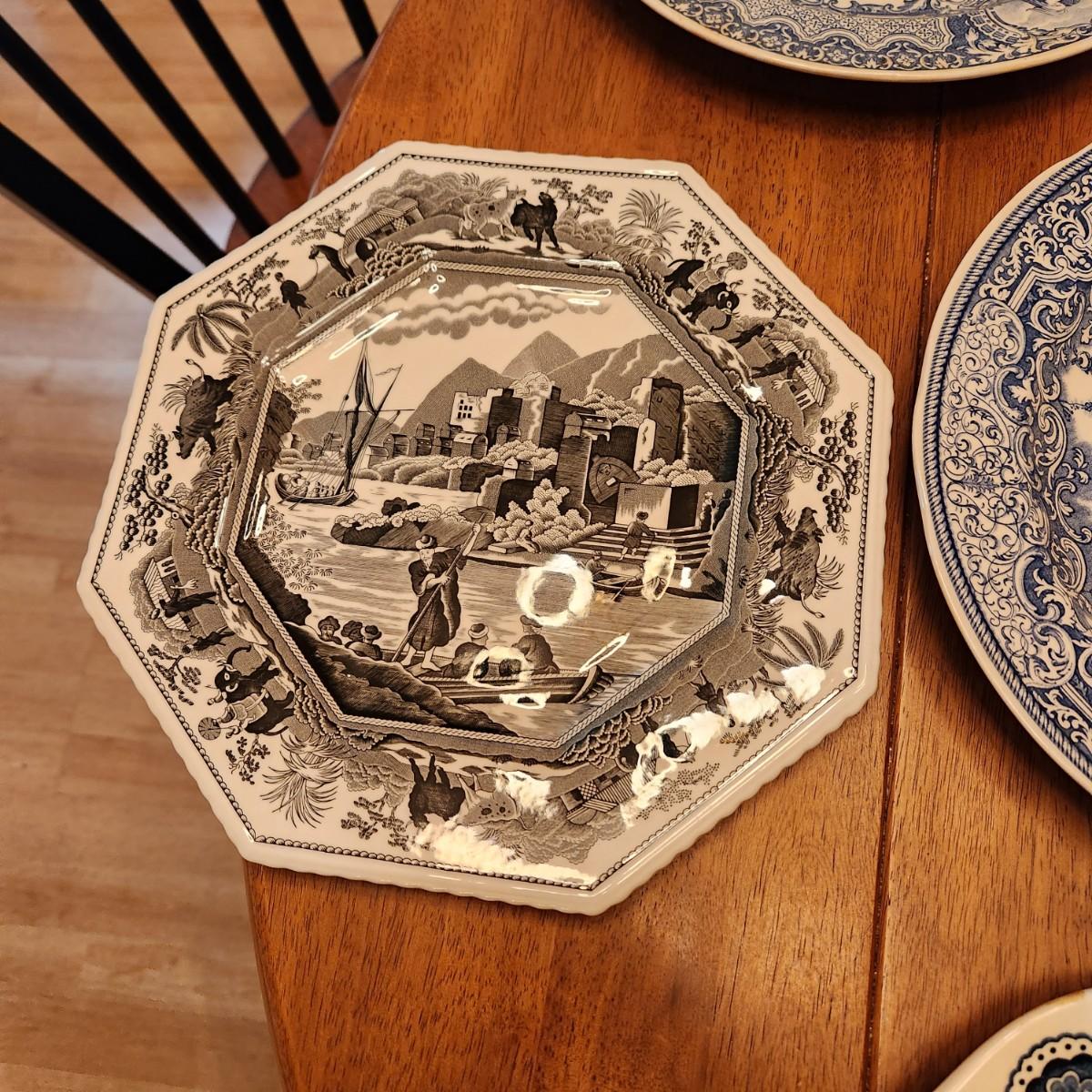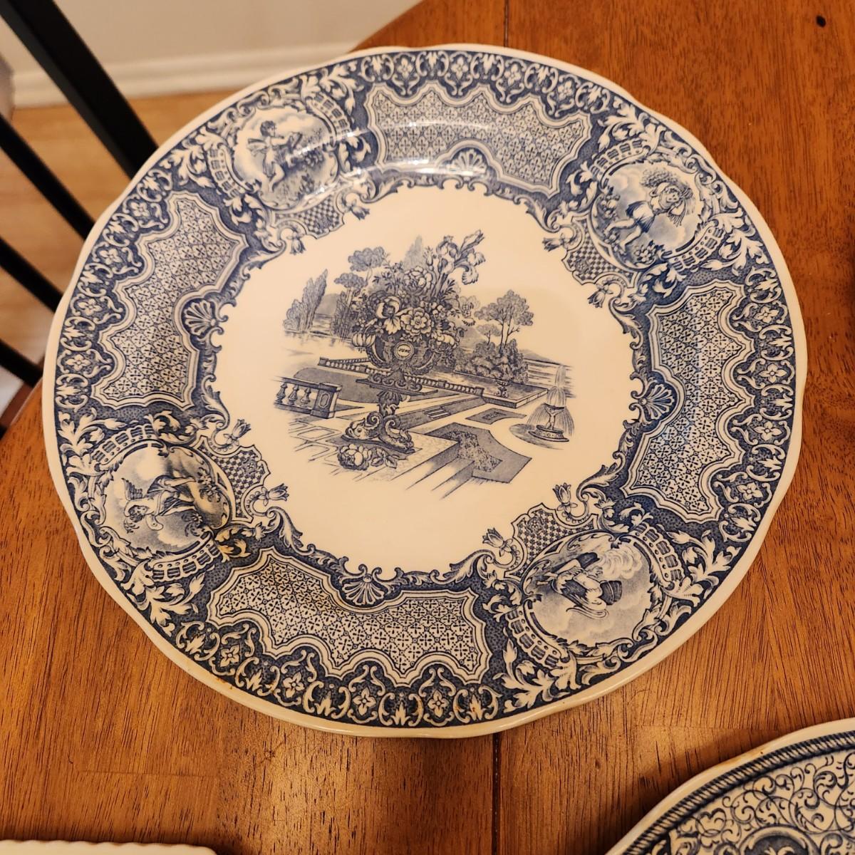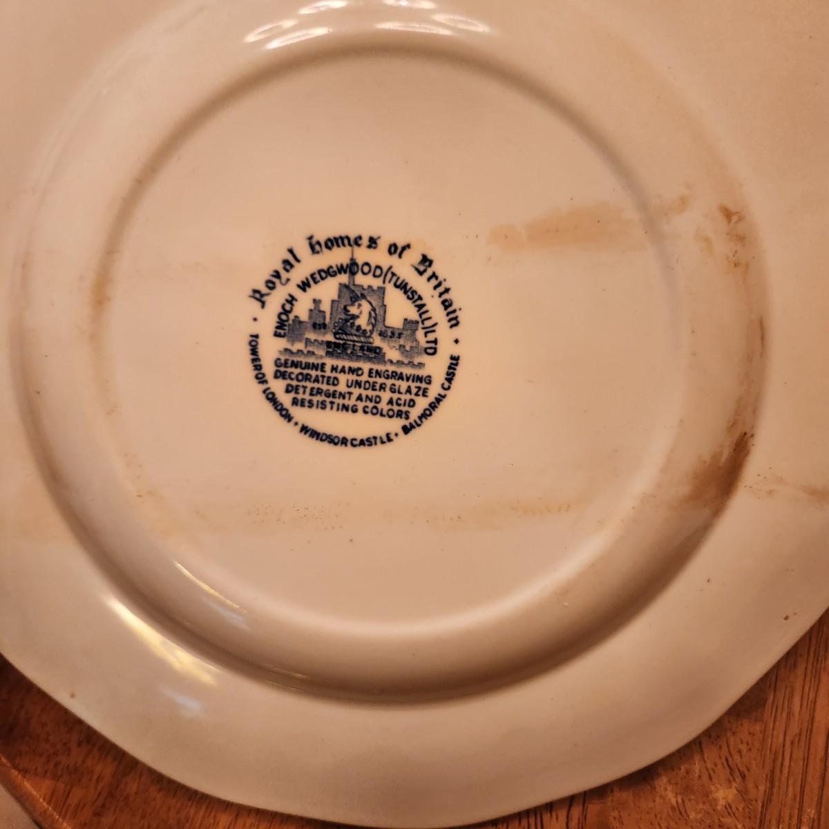 Lot of 9 Flow Blue Plates Spode, Blue Bonnet, Wedgwood, Liberty Blue