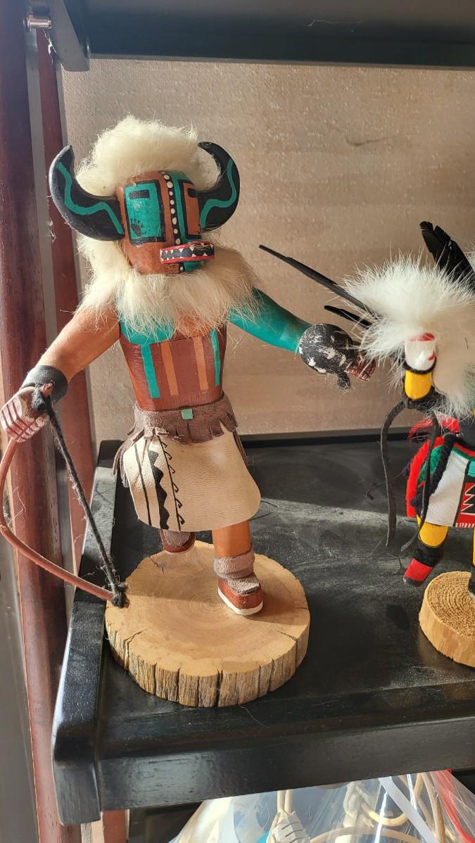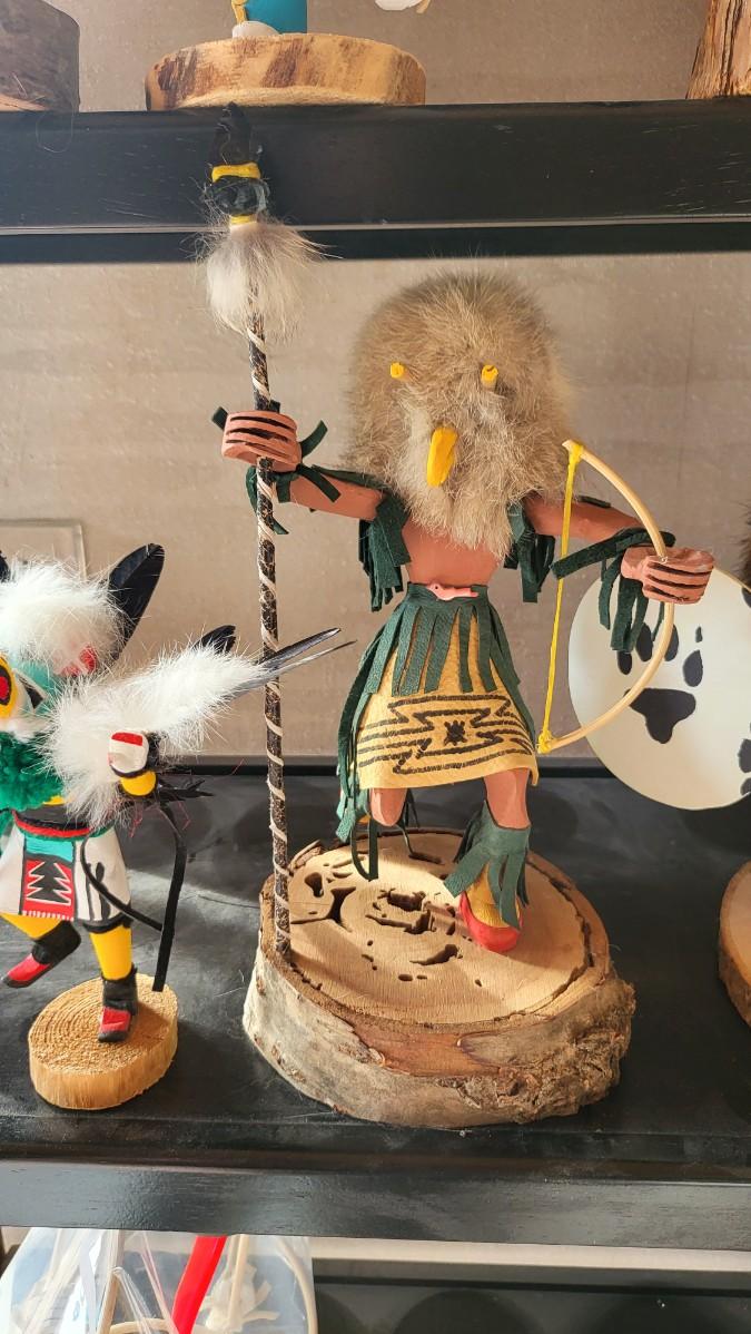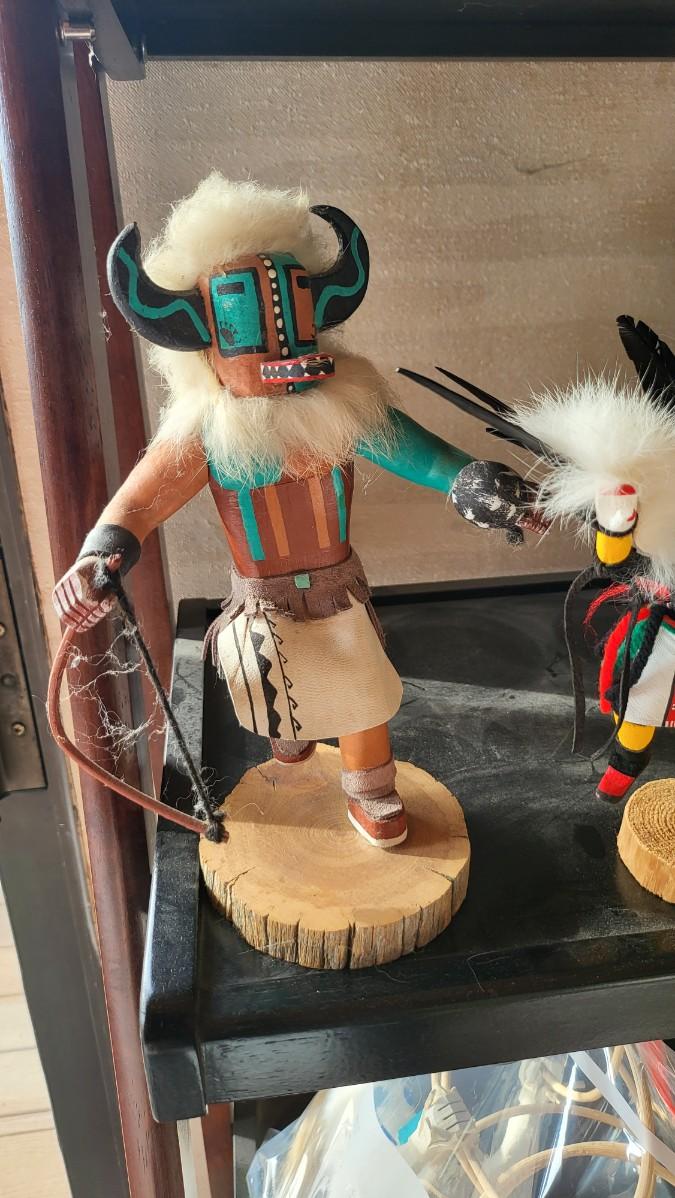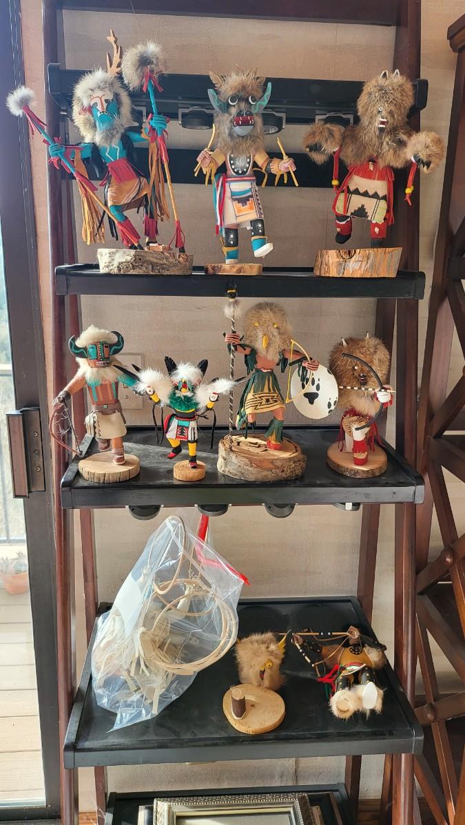 Lot of 9 Native American hand carved & signed Kachina dolls. All measures between 7" tall to 12" tall. Some are broken, but have all pieces. Easy to repair.