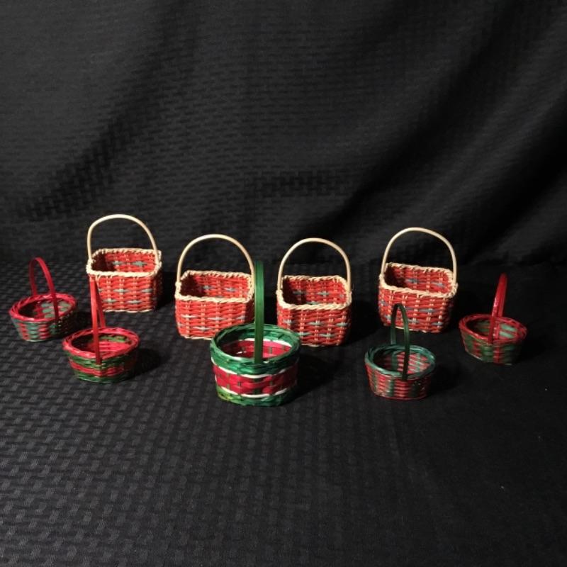 Lot of nine miniature holiday baskets of varying sizes; see pictures.